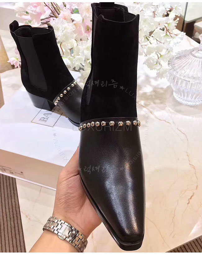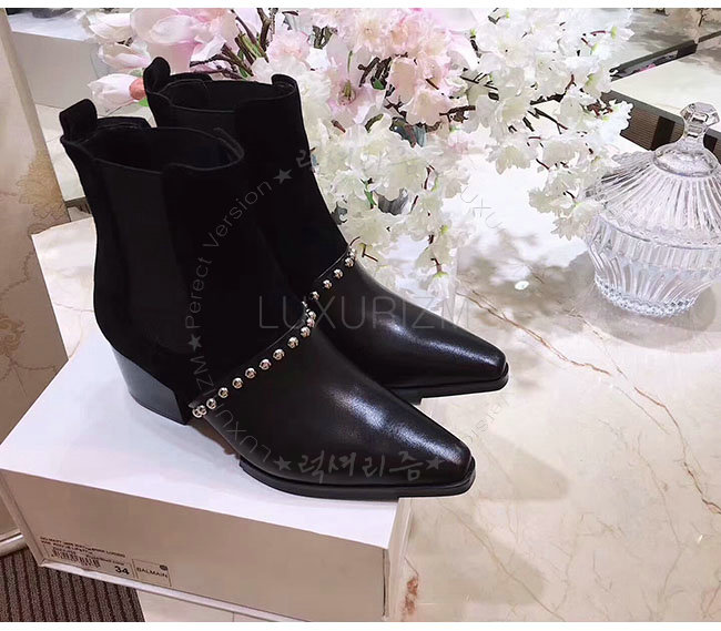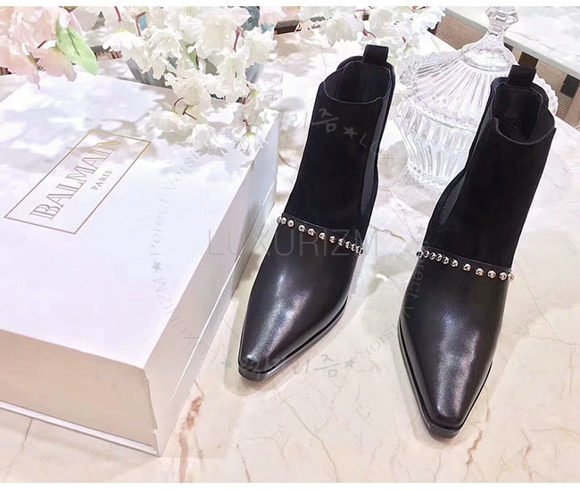 BALMAIN-W7CBV 발망 아르테미시아 블랙 가죽 스웨이드 부츠 여성용