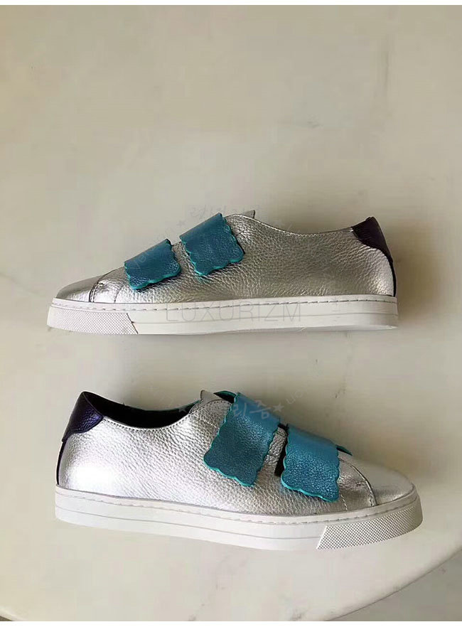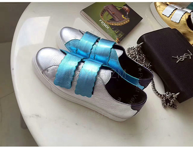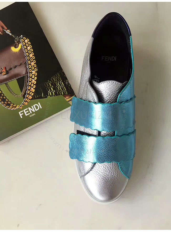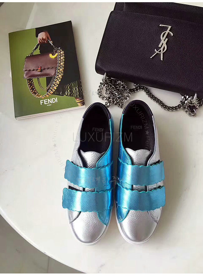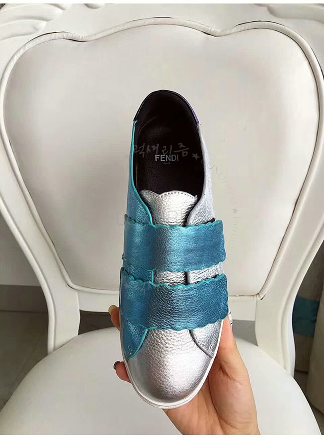 FENDI-8E65439 펜디 실버 래미네이트 가죽 스니커즈 여성용