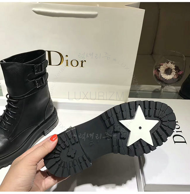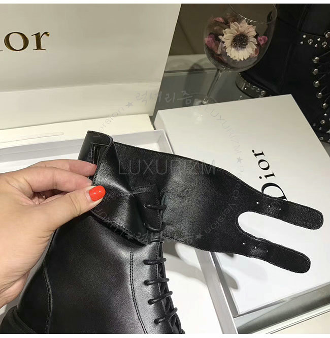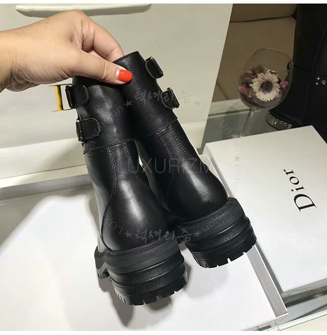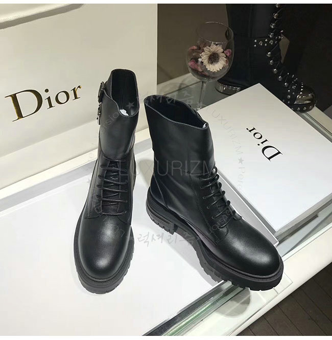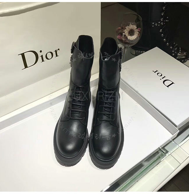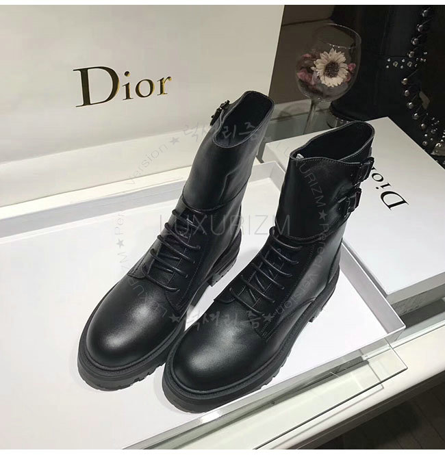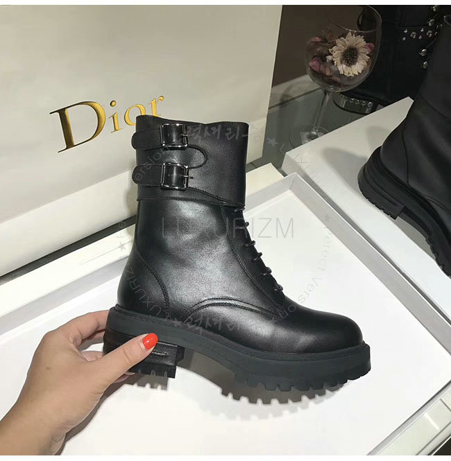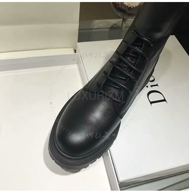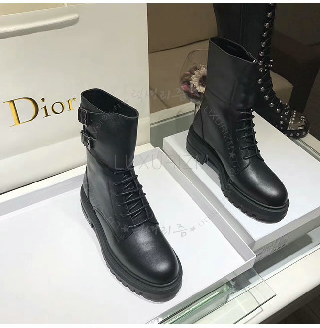 DIOR-KCI398 디올 블랙 송아지 가죽 레인저 부츠 여성용