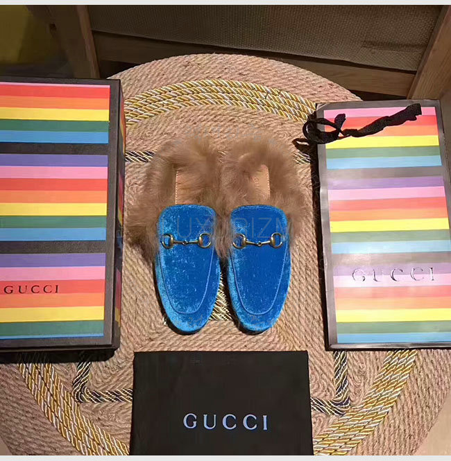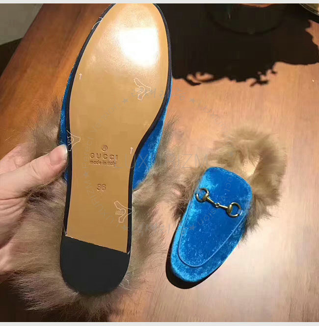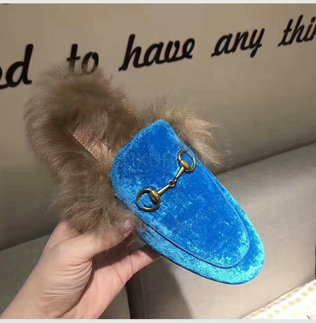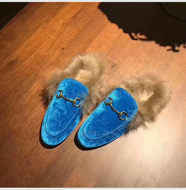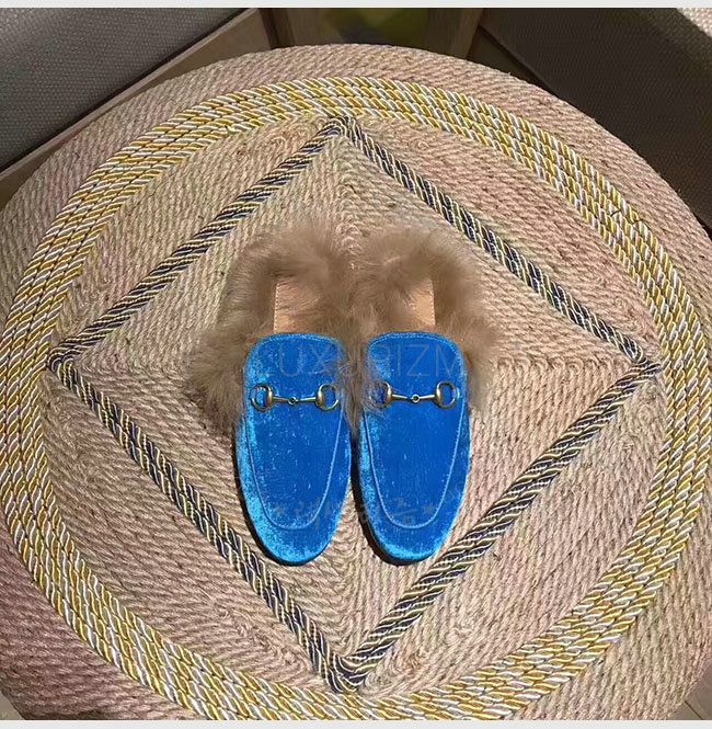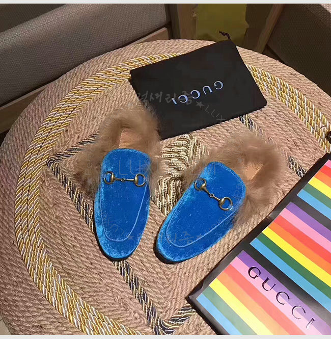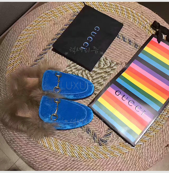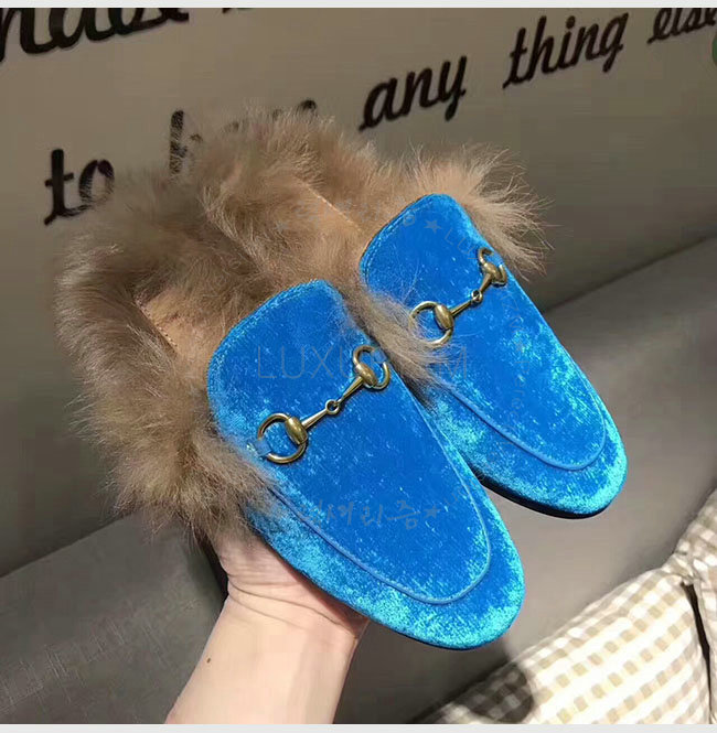 GUCCI-448657 2235 구찌 프린스타운 블루 벨벳 슬리퍼 여성용