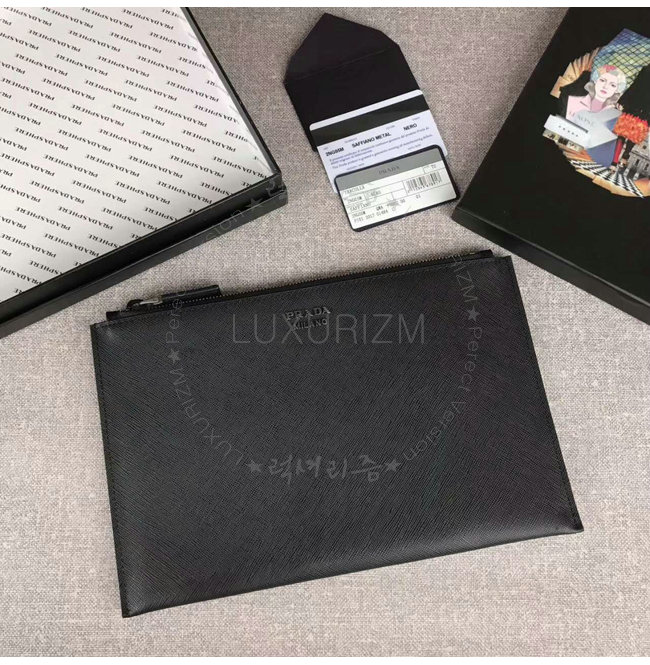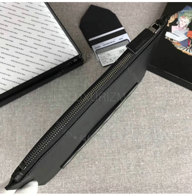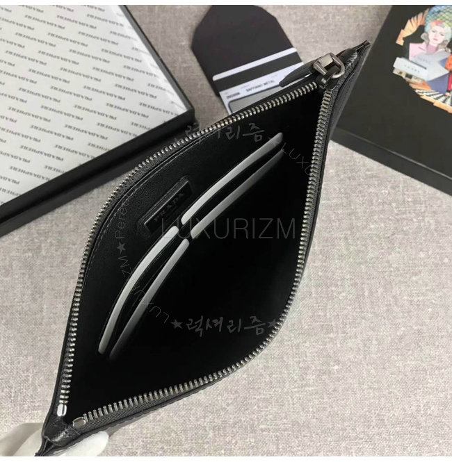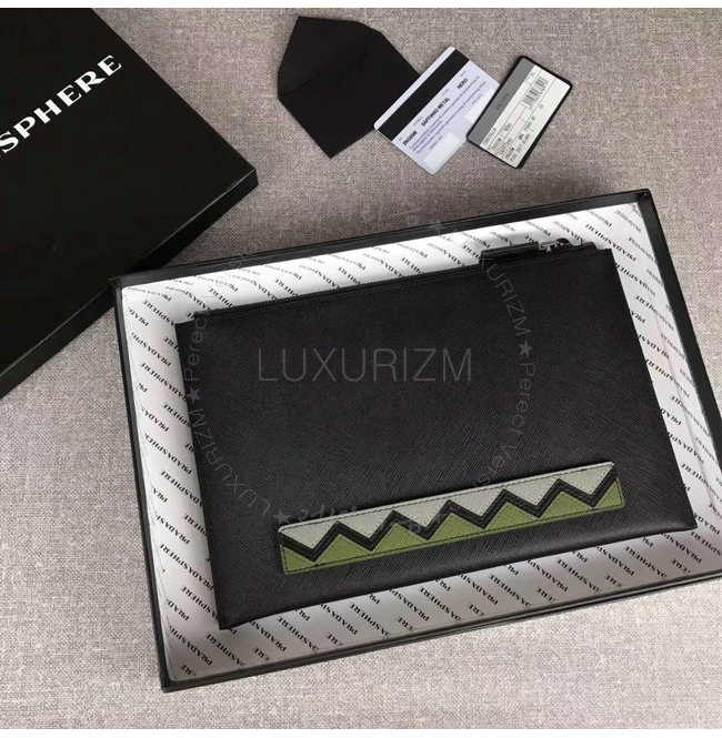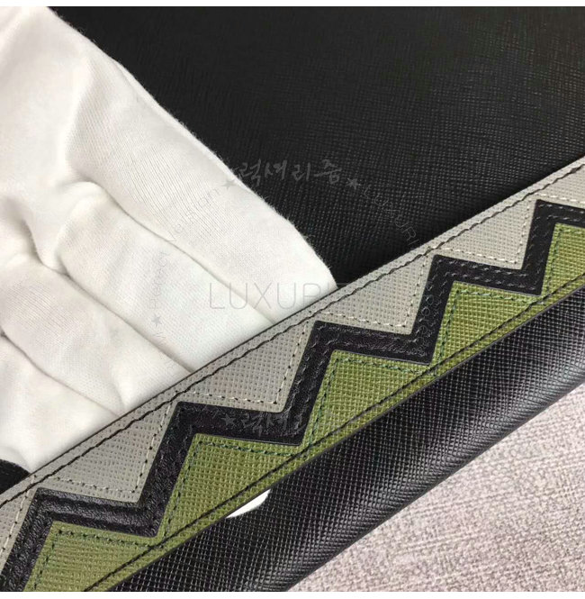 [스페셜오더]PRADA-2NG05M 프라다 사피아노 가죽 인타르시아 장식 카키 코스메틱 파우치
