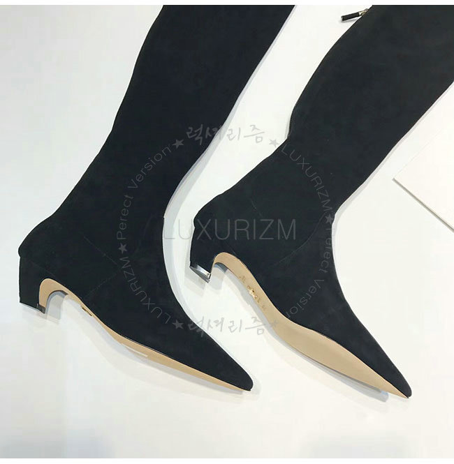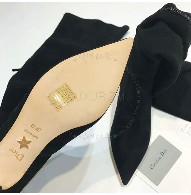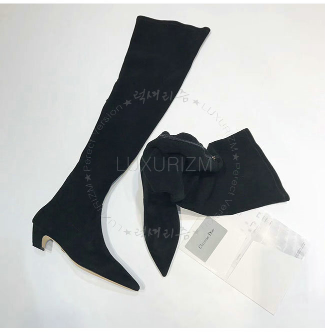 [스페셜오더]DIOR-KDH369 디올 블랙 스웨이드 램스킨 스트레치 사이하이 부츠 여성용