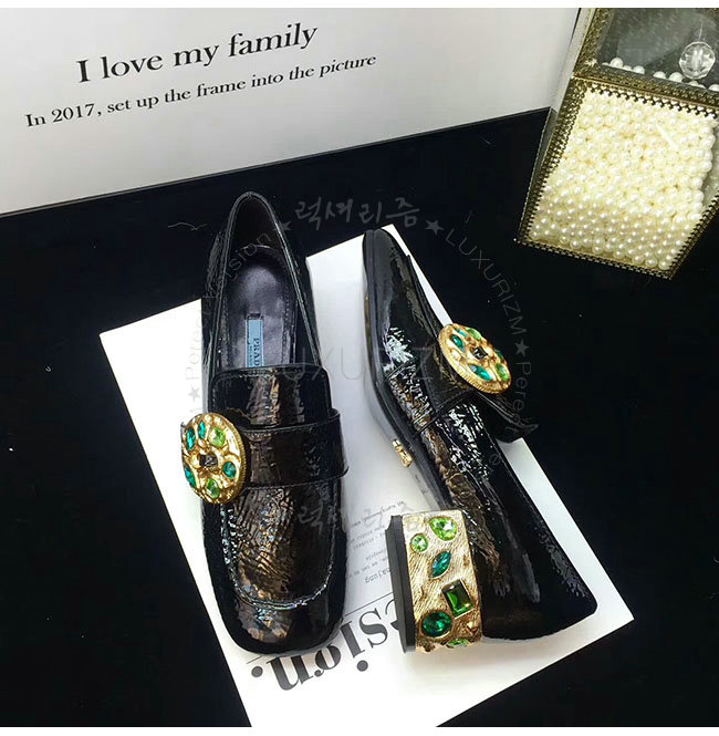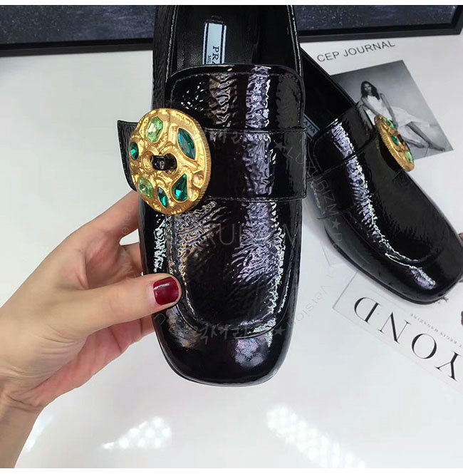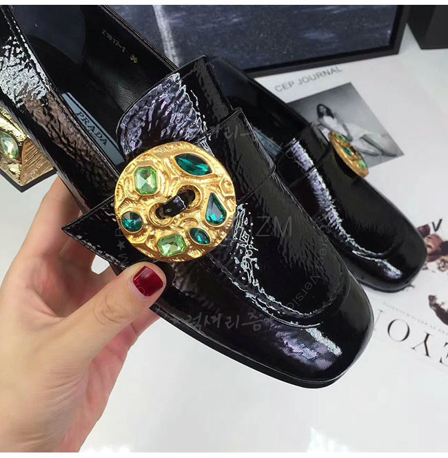PRADA-1D963H 프라다 블랙 페이턴트 가죽 모카신 여성용