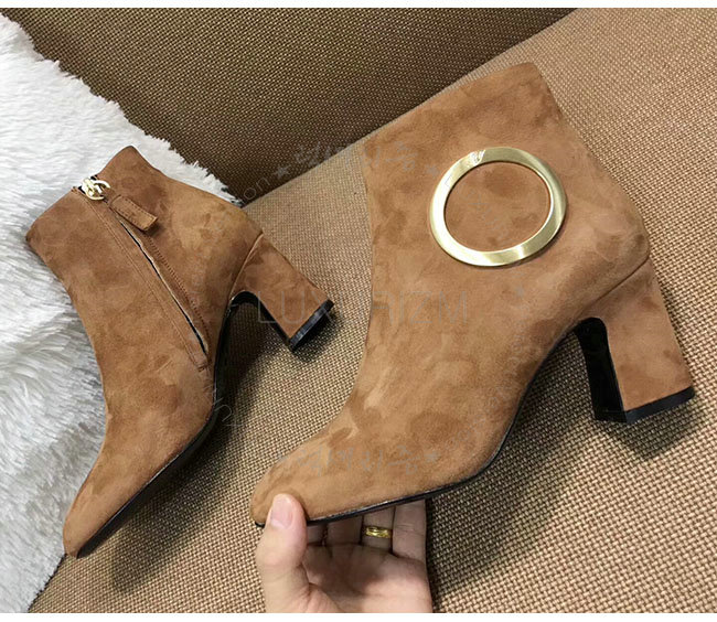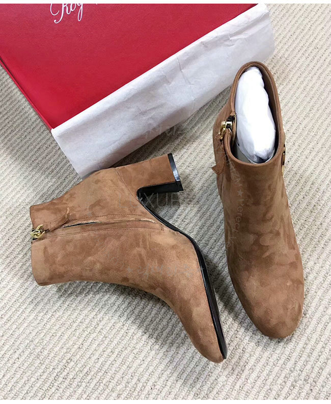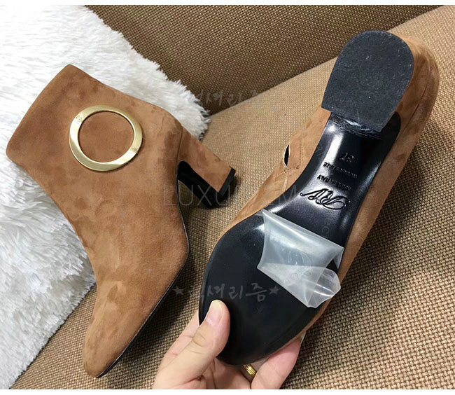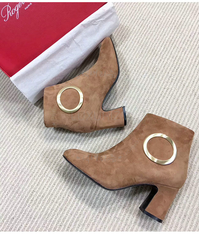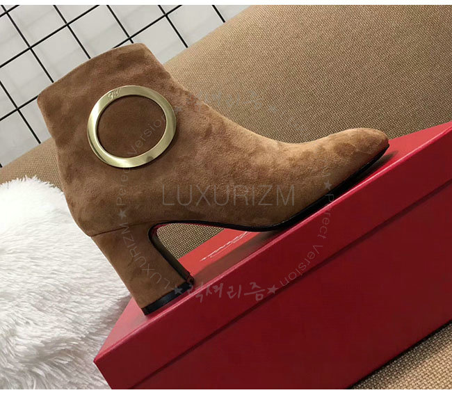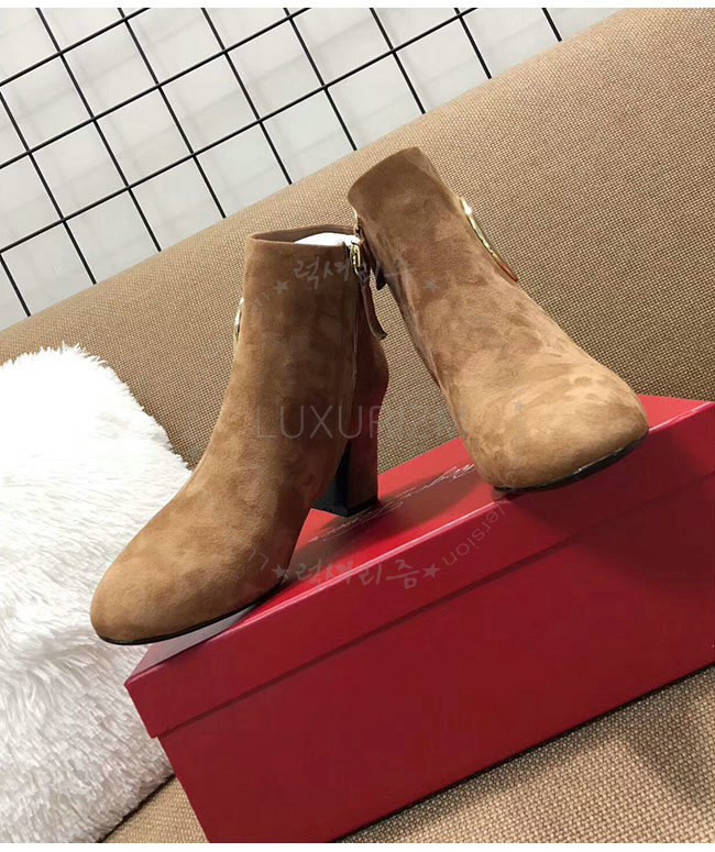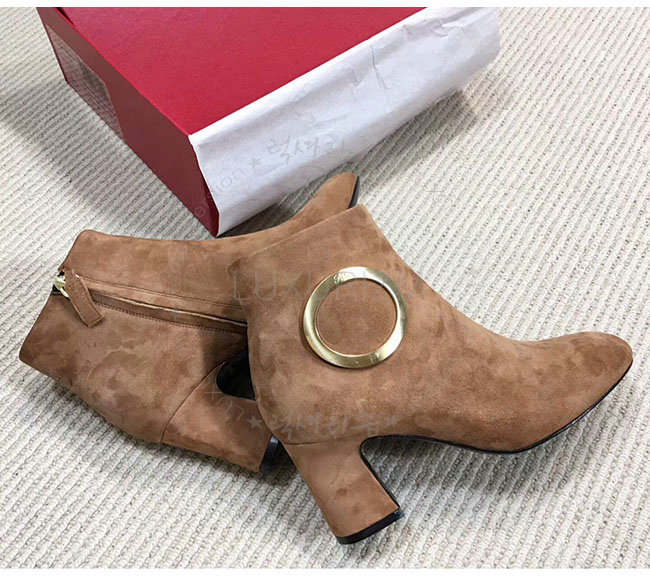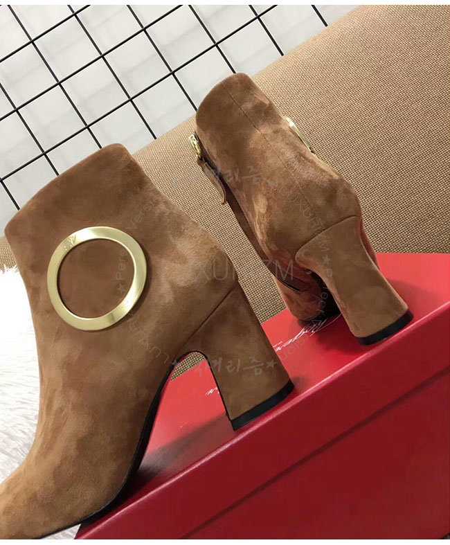 ROGER VIVIER-43717281O20 로저비비에 브라운 스웨이드 청키 트럼펫 라운드 버클 앵클 부츠 여성용