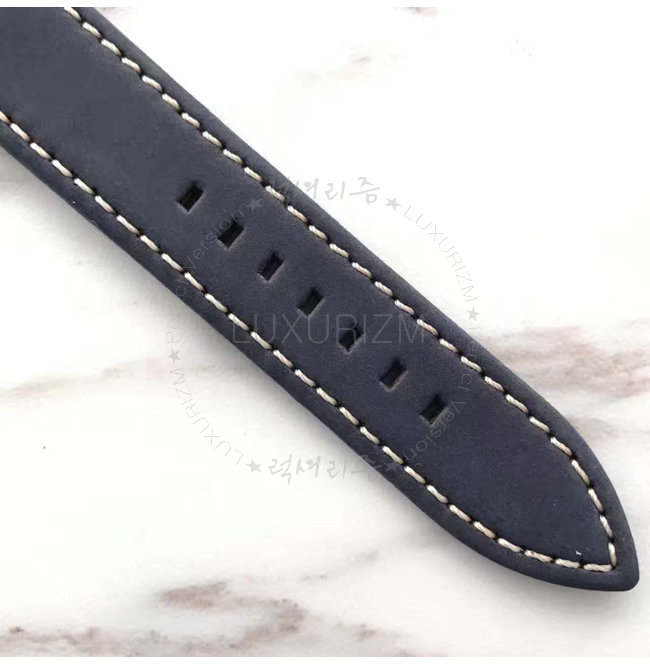 -에이지드 스틸 케이스/사파이어 글래스/누벅 가죽 스트랩.핀 버클.