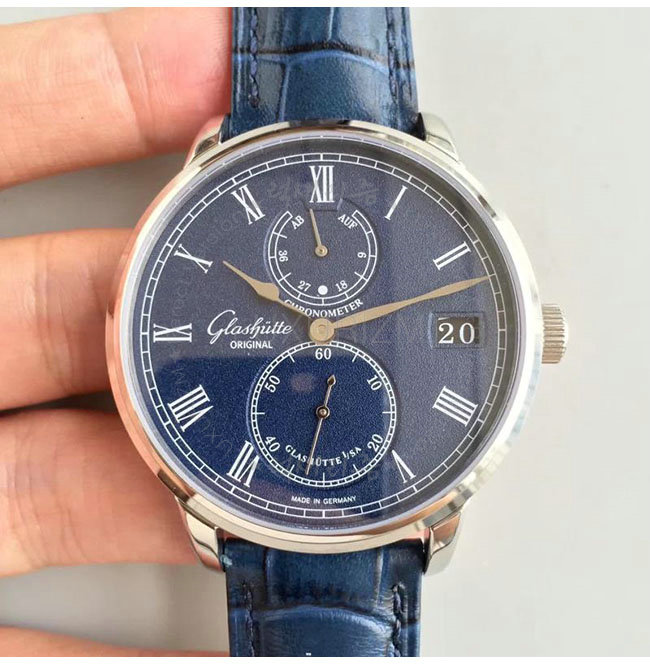 [스페셜오더]Glashutte Original-글라슈테 오리지널 세네터 크로노미터 스틸 블루다이얼 워치 42mm