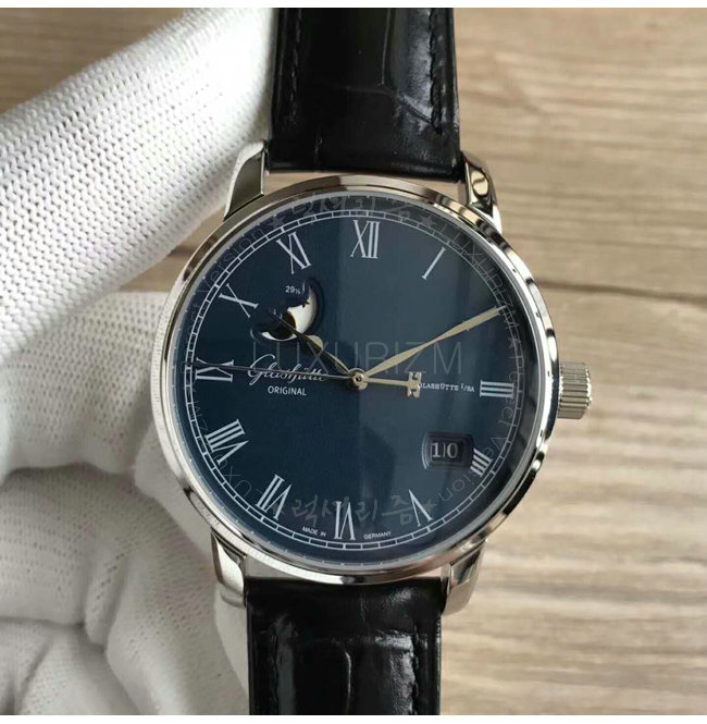 -커스텀급 글라슈테오리지널 세네터 파노라마 데이트 문페이스시계 HKLUXURIZM