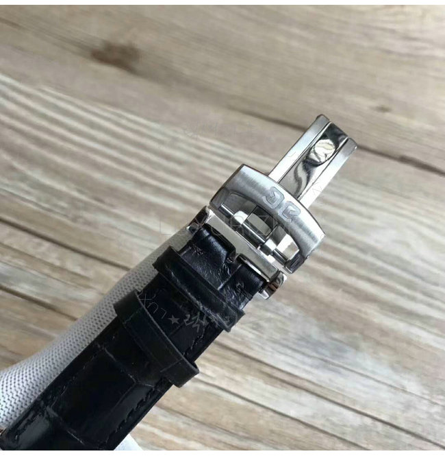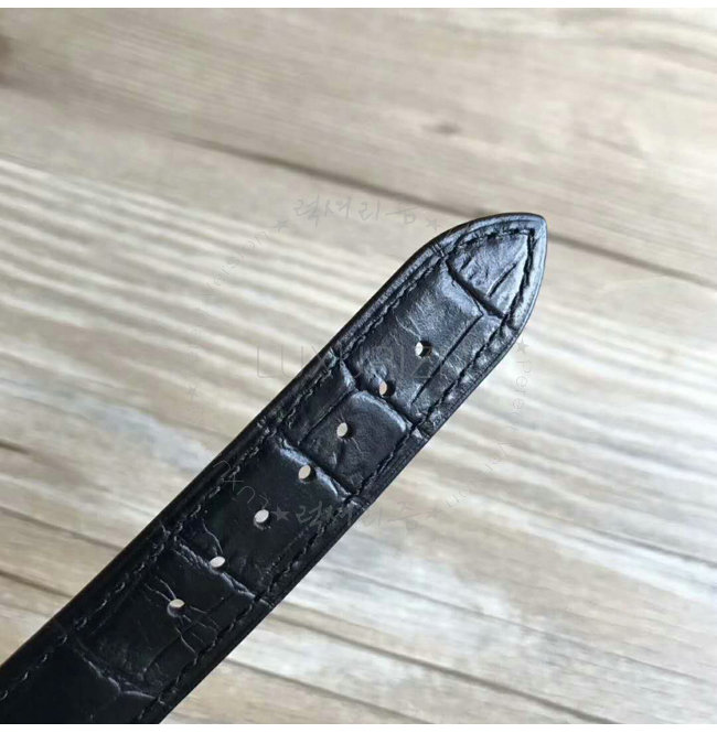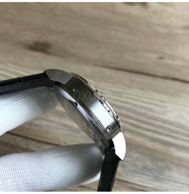 -스틸 케이스/사파이어 글래스 투명 케이스 백/블랙 가죽스트랩 핀버클.