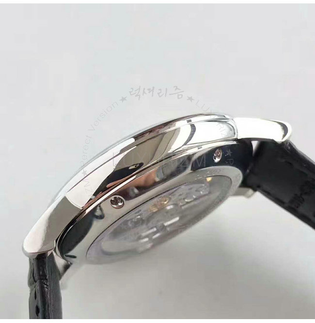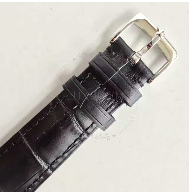 -스테인레스 스틸 케이스/투명 케이스백/가죽스트랩 핀버클/루테늄 핸즈.