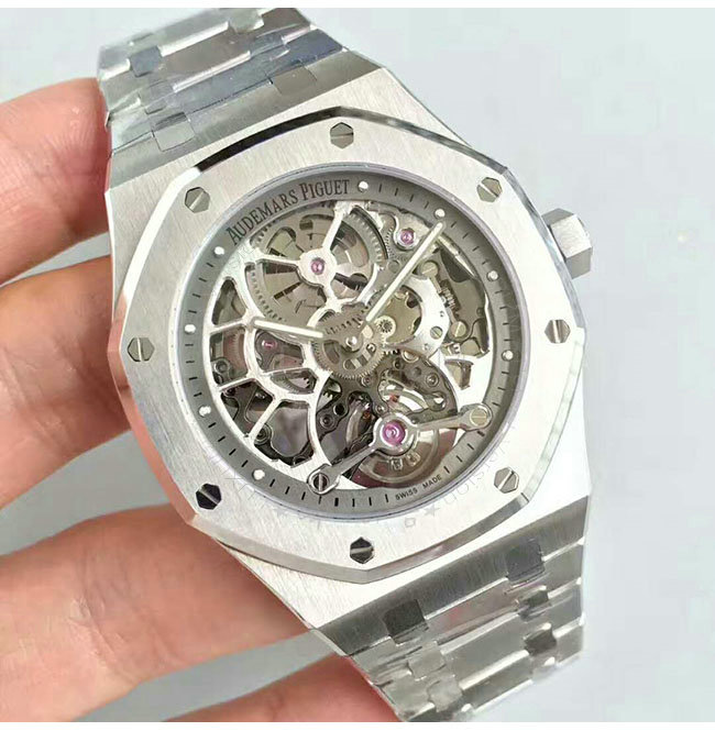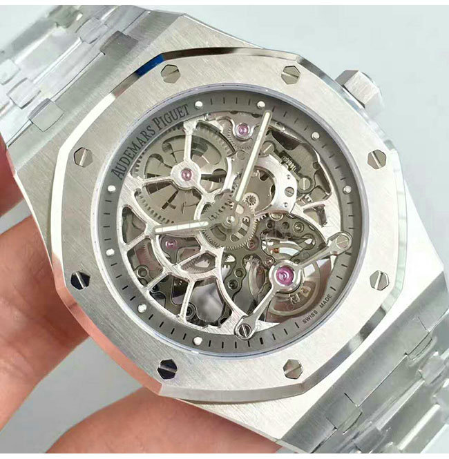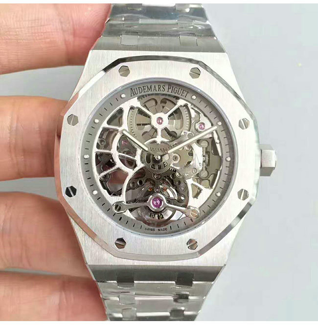 -스테인레스 스틸 케이스/사파이어 글래스 투명 케이스 백/오데마 피게 핸즈.