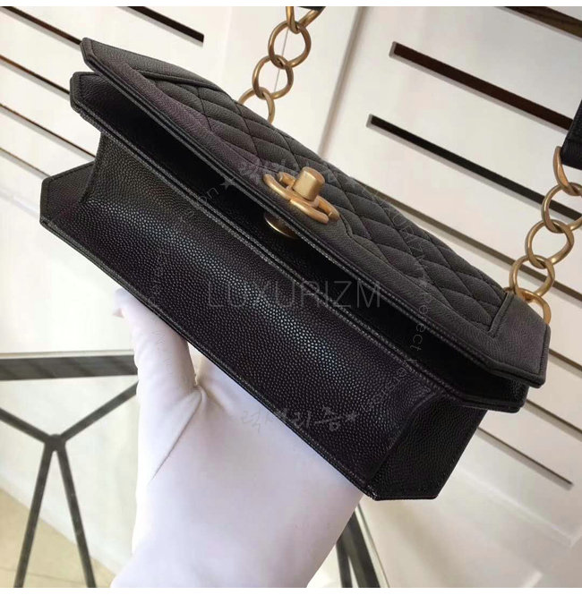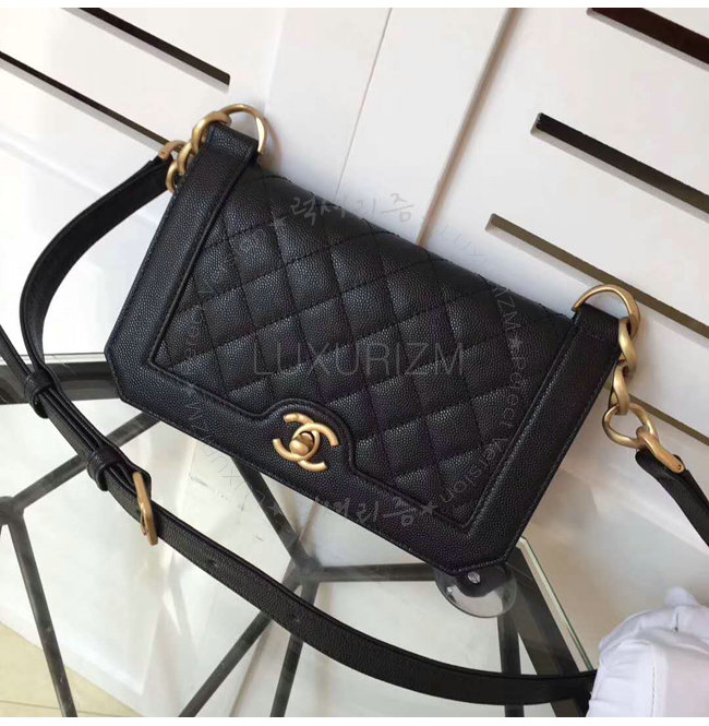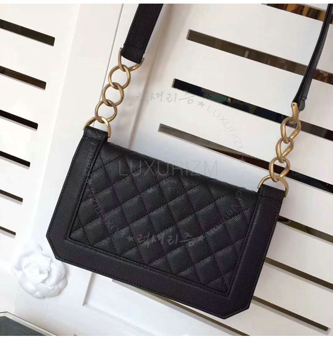 [스페셜오더]CHANEL-A91576 샤넬 그레인드 카프스킨 골드 메탈 블랙 플랩 백