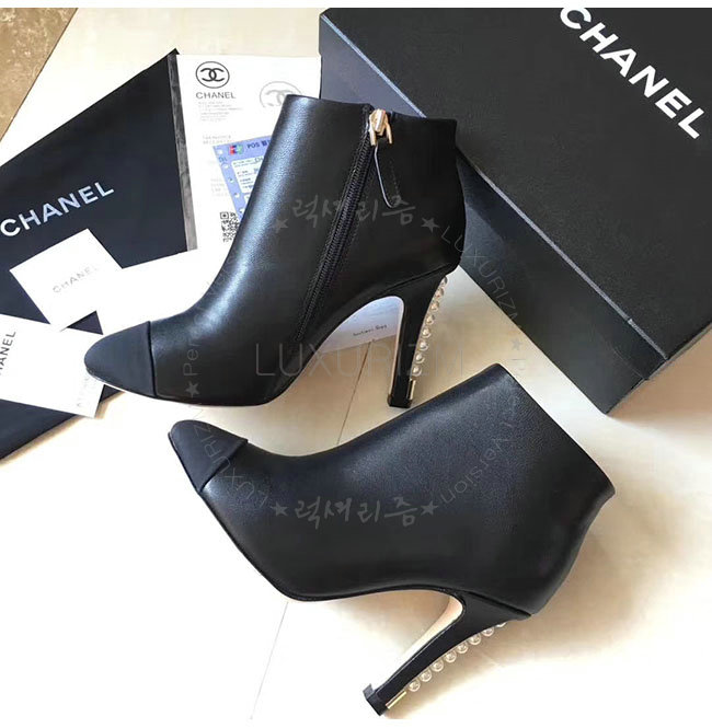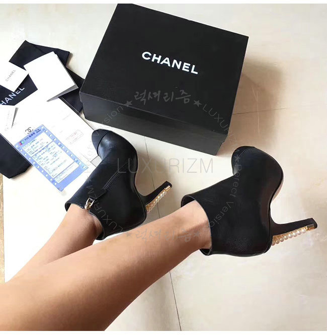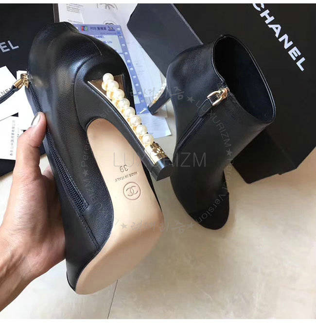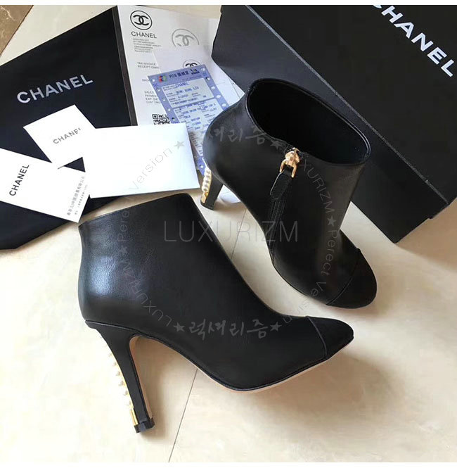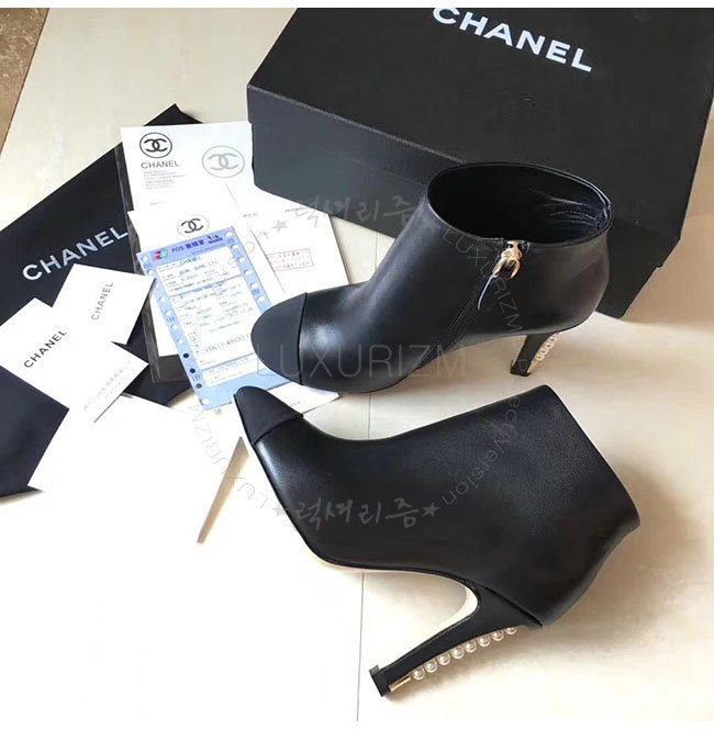 CHANEL-G32752 샤넬 블랙 카프스킨 그로그랭 쇼트 부츠 여성용