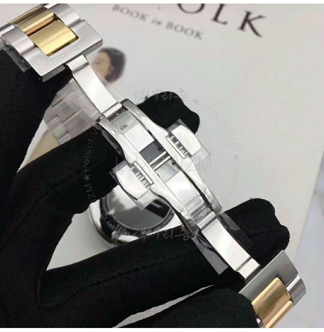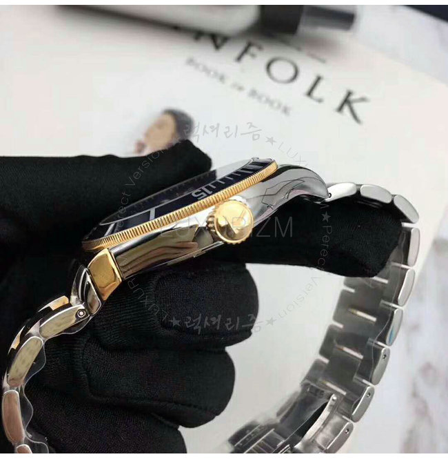 -옐로우골드IPG특수 이온 도금 케이스/블랙 알류미늄 회전 베젤.