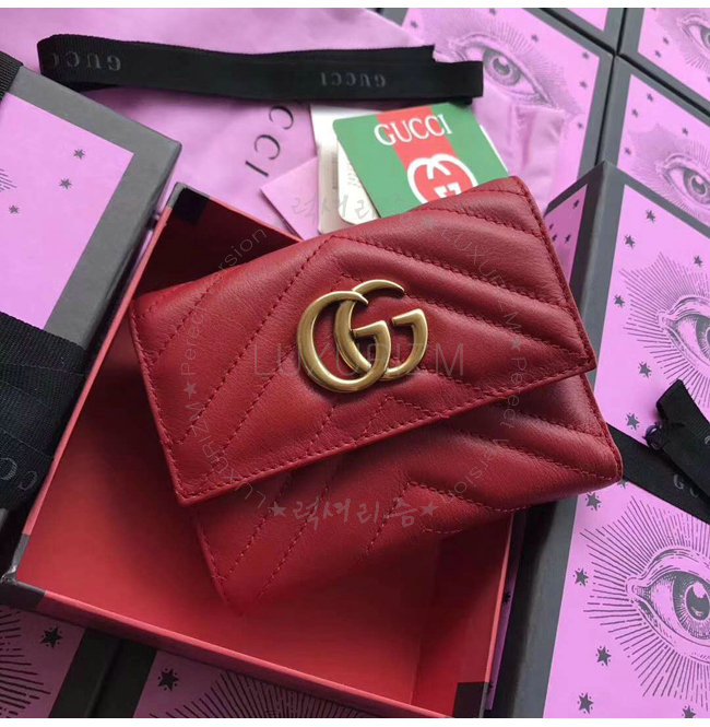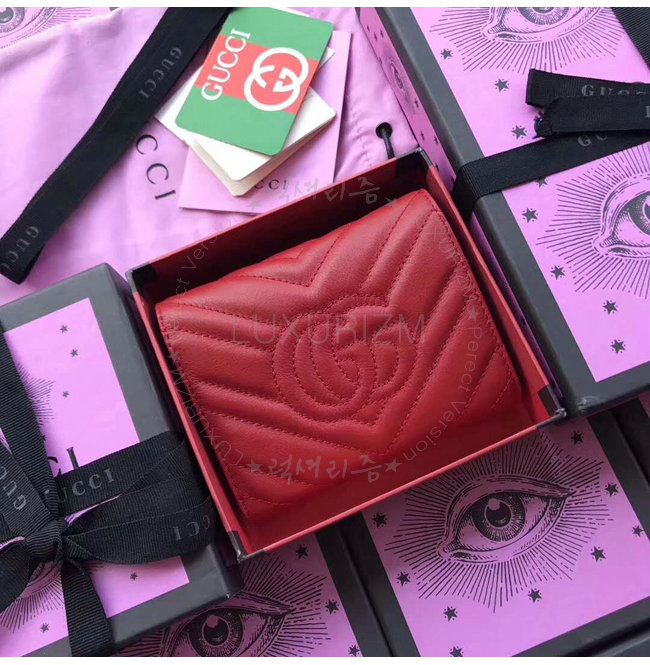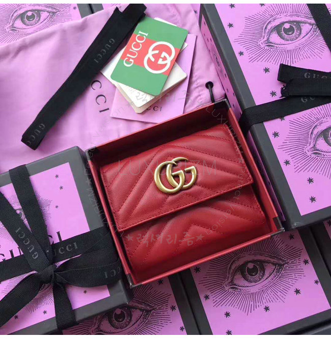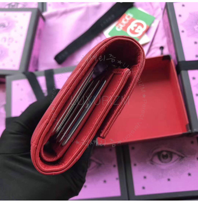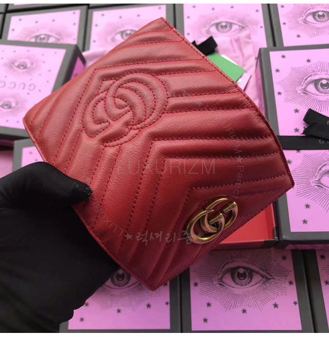 [스페셜오더]GUCCI-474802 6433 구찌 GG Marmont 레드 마틀라세 가죽 월릿