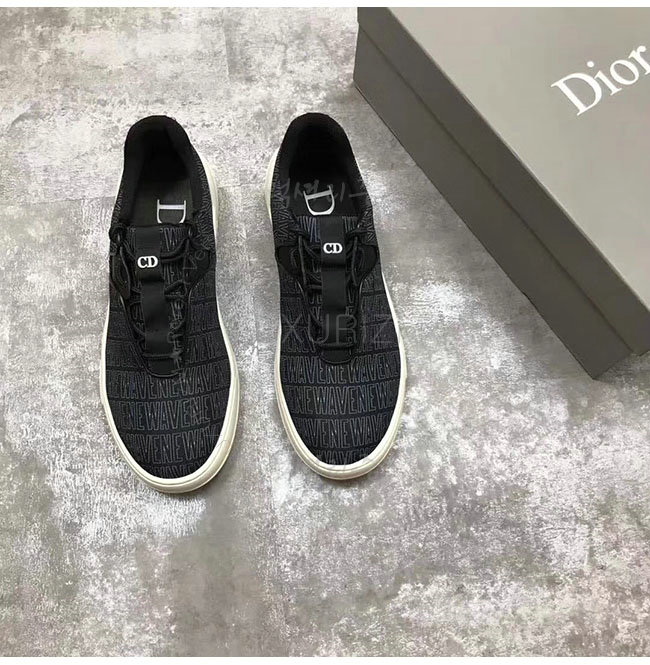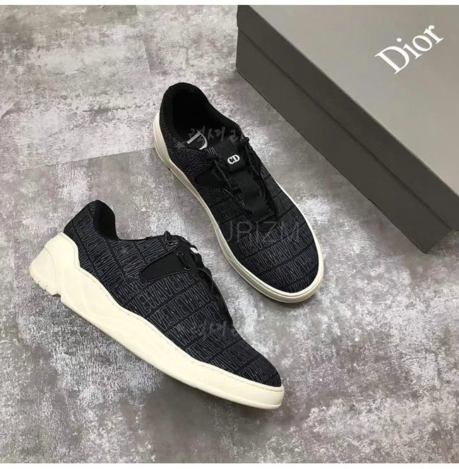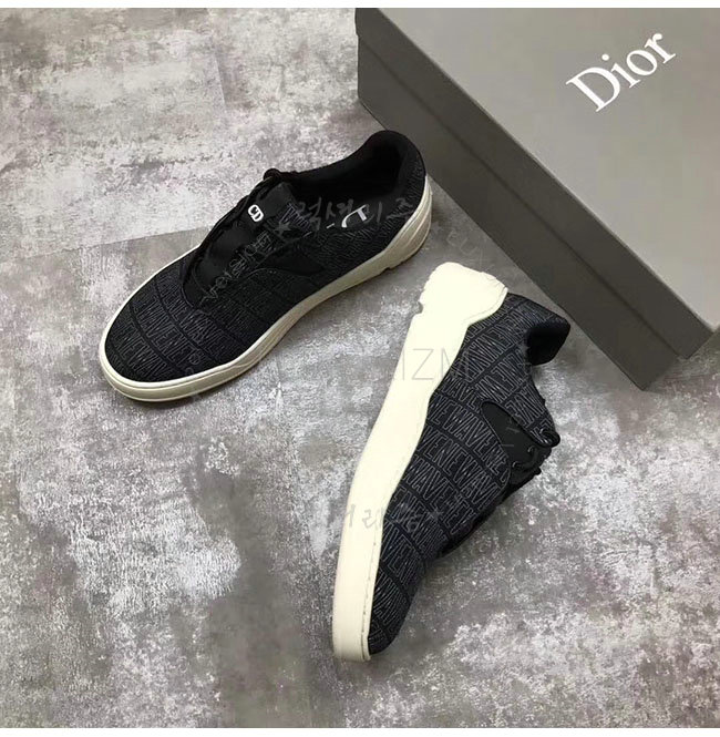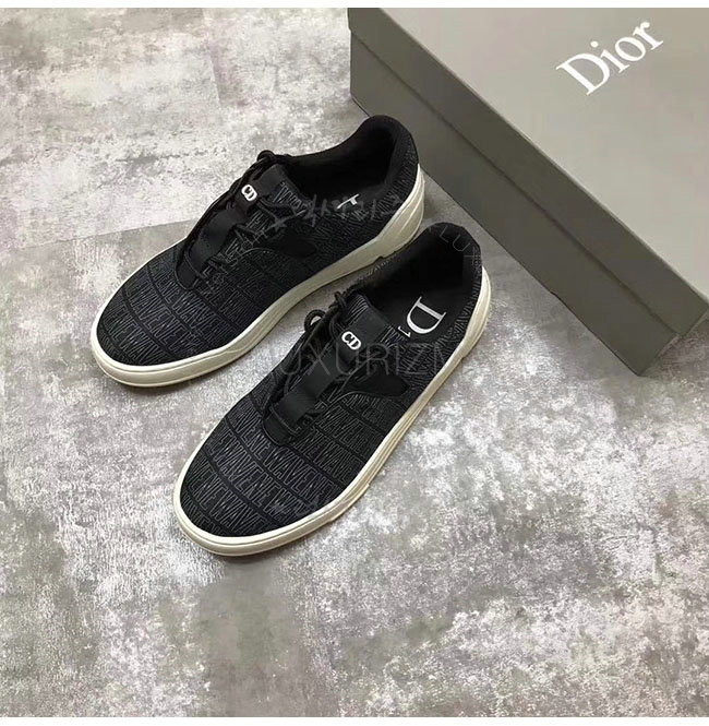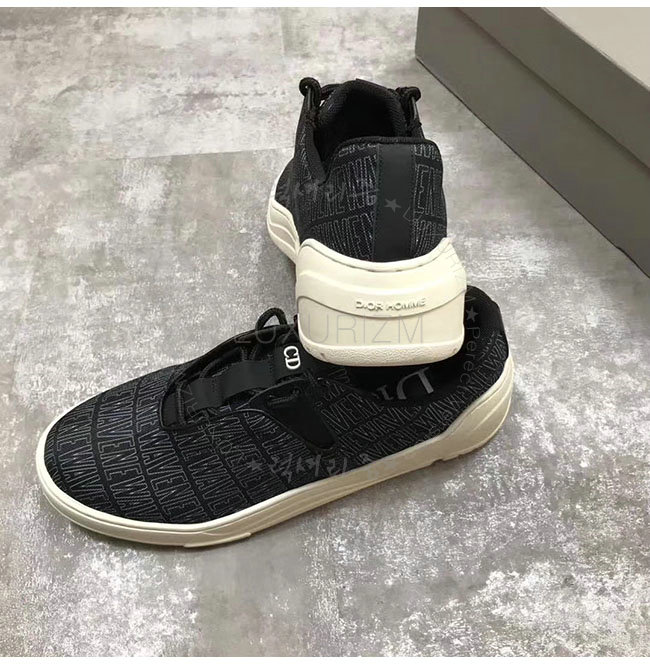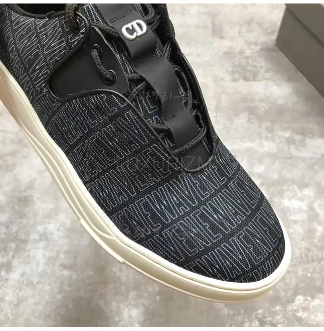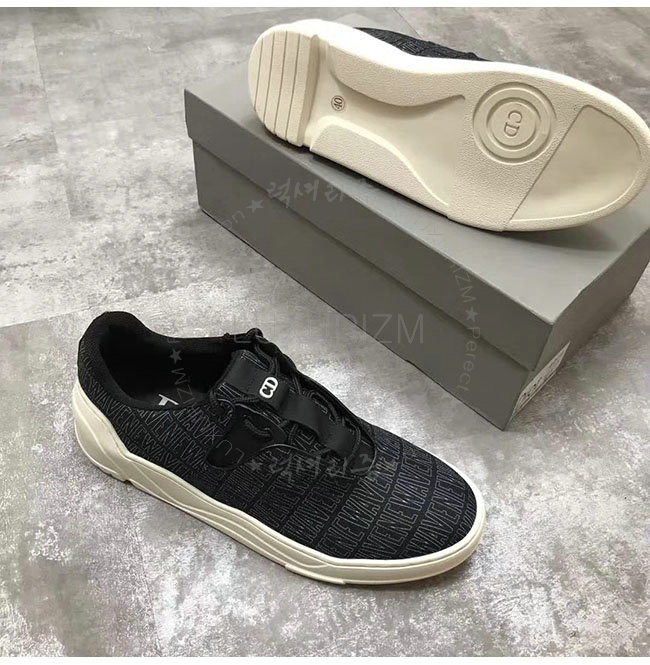 DIOR-3SN146 디올 블랙 송아지 가죽 도트 패턴 블랙 패브릭 스니커즈 남성용