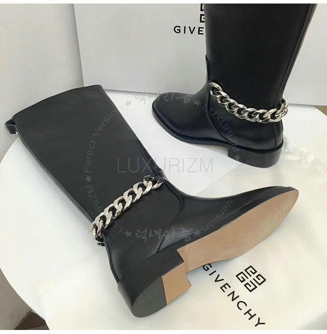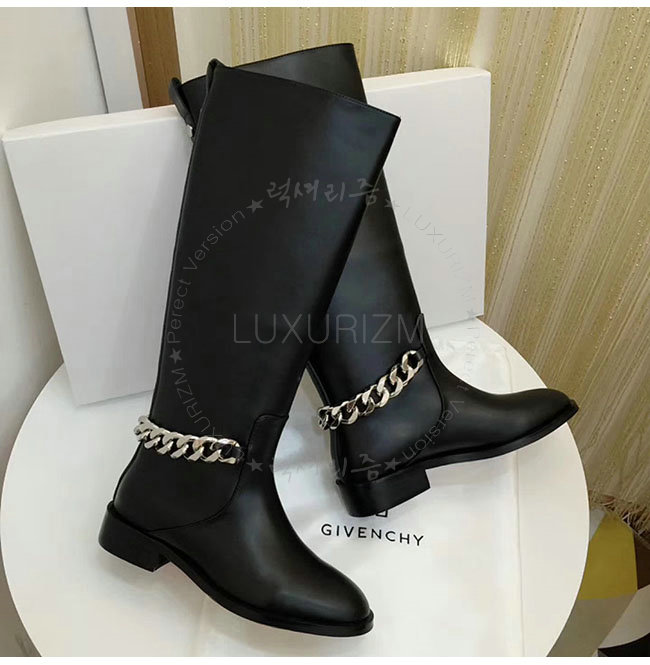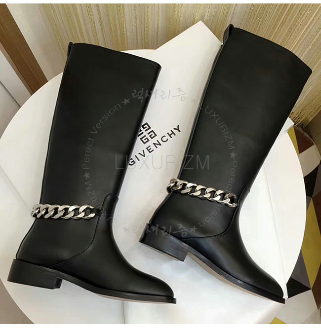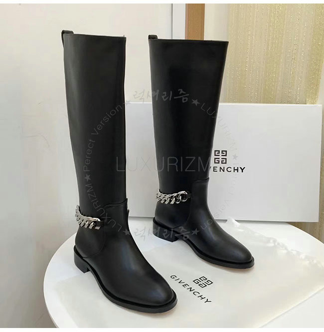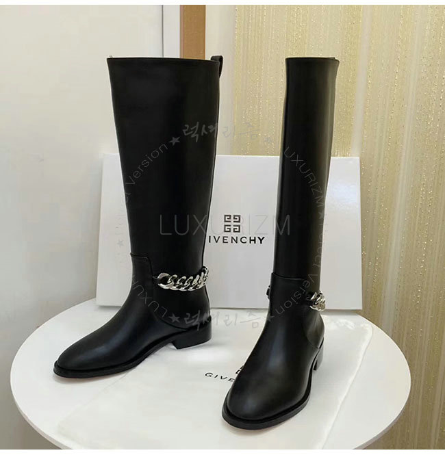GIVENCHY-BE0921 지방시 금속 체인 가죽 하이 부츠 여성용