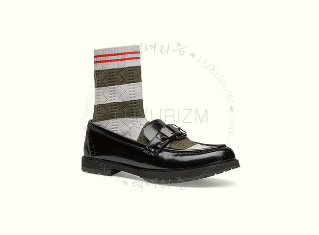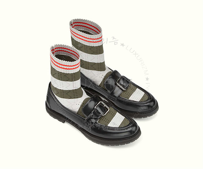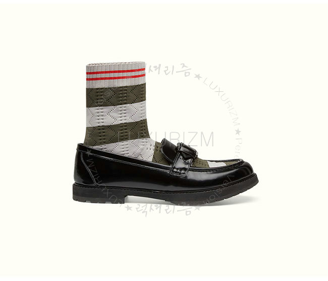 FENDI-8T6594 펜디 블랙 가죽 투타운 니트 로퍼 여성용