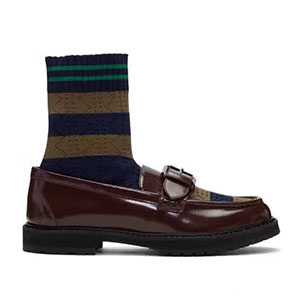 FENDI-8T6594 펜디 버건디 가죽 투타운 니트 로퍼 여성용