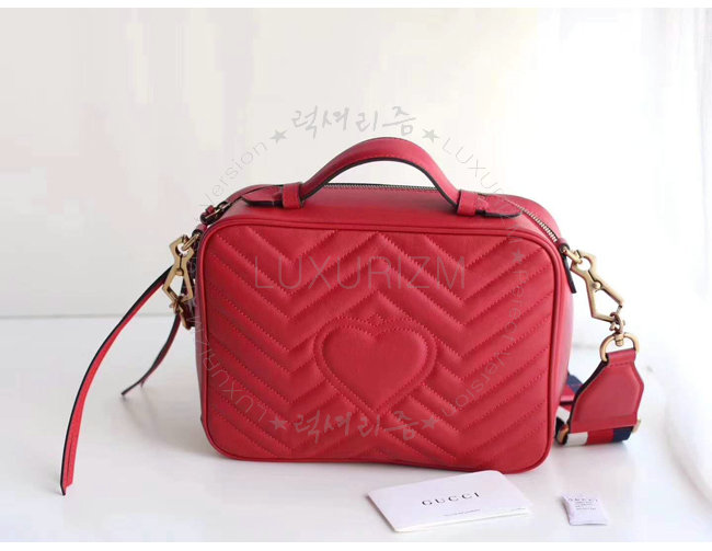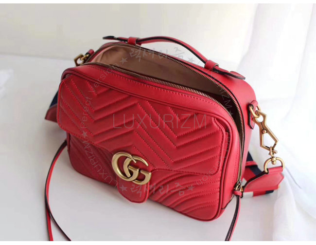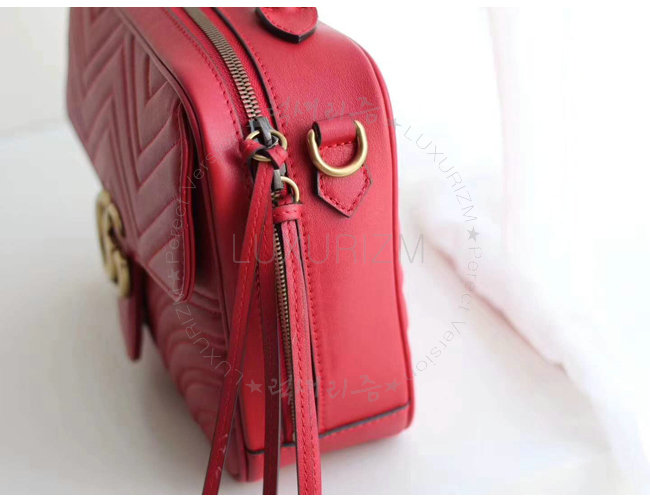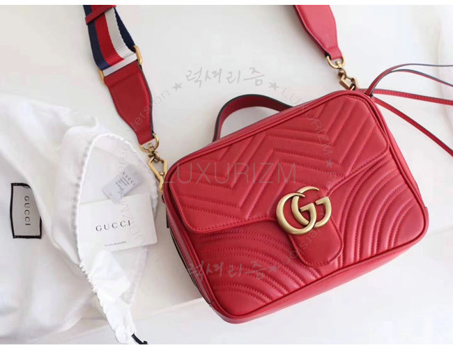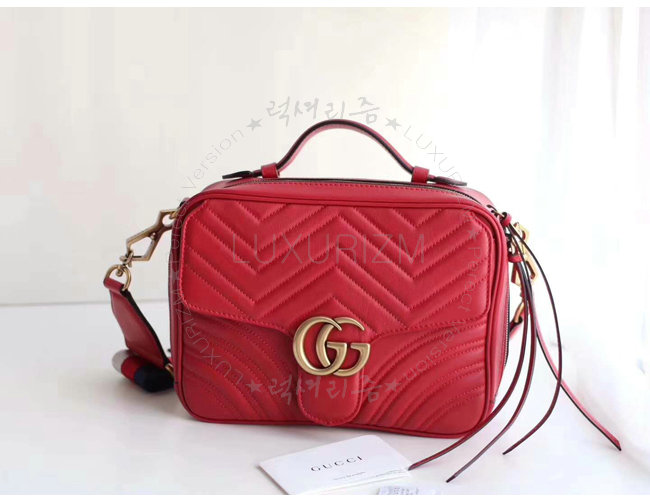 -구찌 GG Marmont 레드 마틀라세 가죽 숄더백카톡 HKLUXURIZM