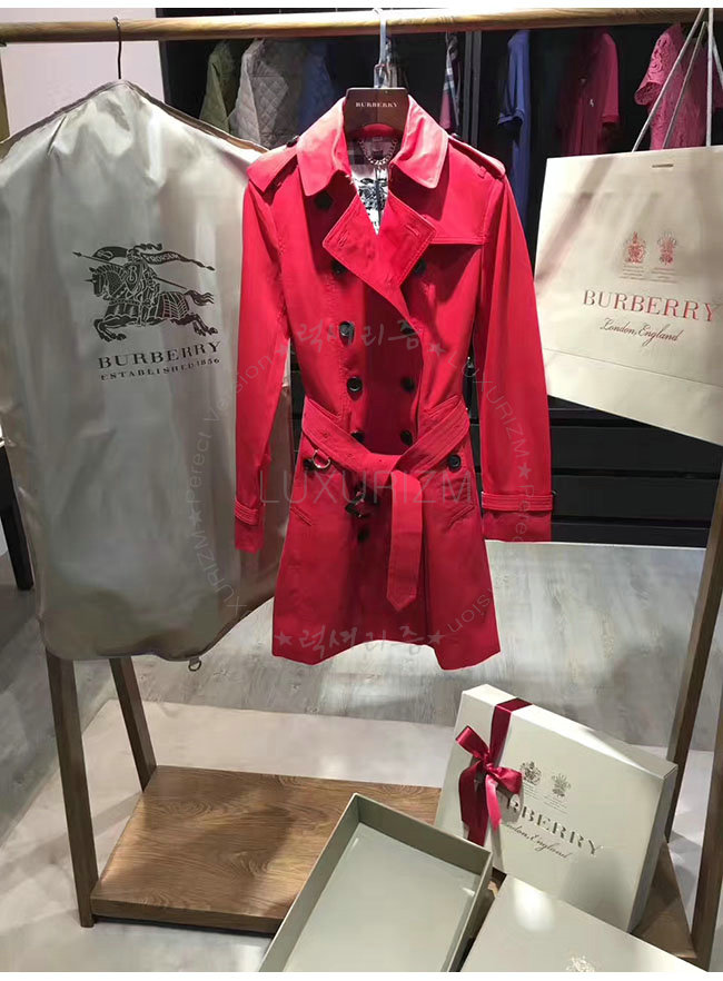 [스페셜오더]BURBERRY-39970281 버버리 샌드링엄 레드 쇼트 헤리티지 트렌치코트 여성용 가격 : 430,000원