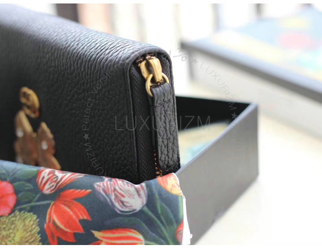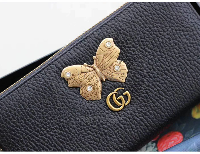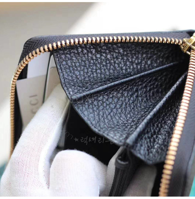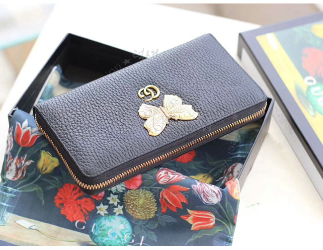 [스페셜오더]GUCCI-499363 1081 구찌 블랙 가죽 나비 스터드 집 어라운 월릿