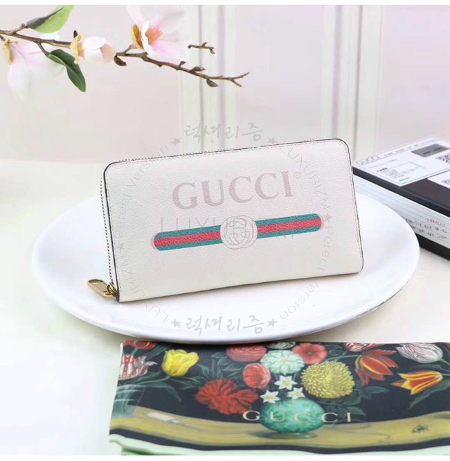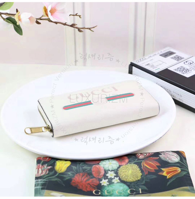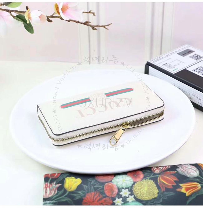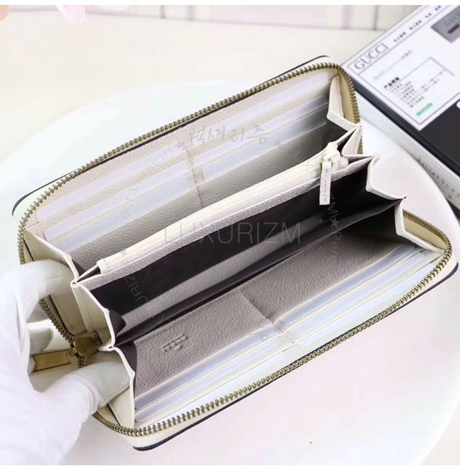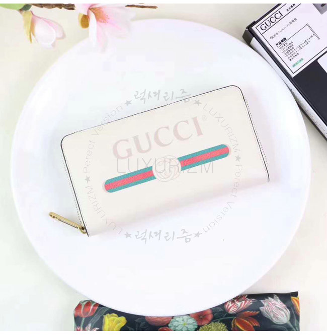 [스페셜오더]GUCCI-496317 8820 구찌 화이트 가죽 Gucci 로고 집 어라운 월릿