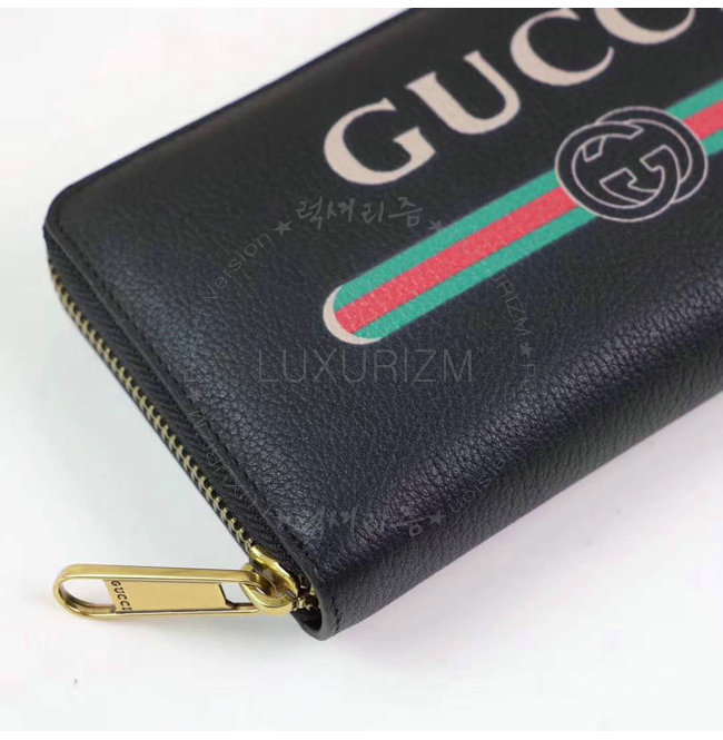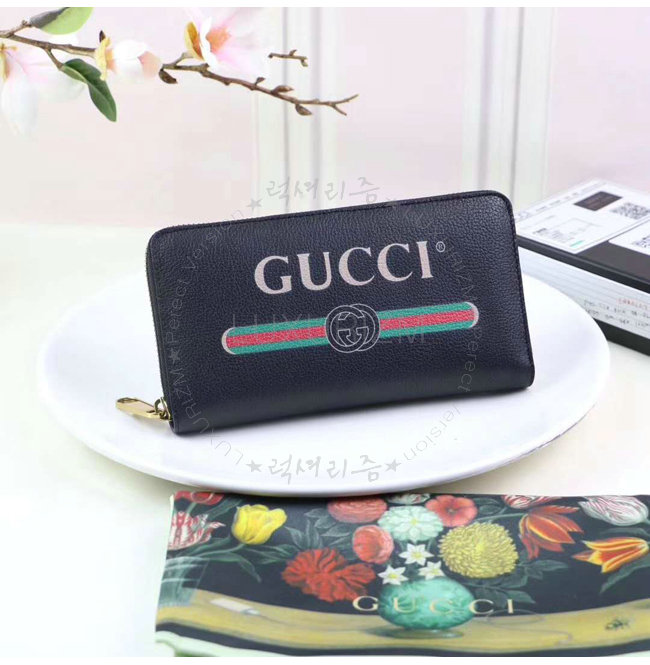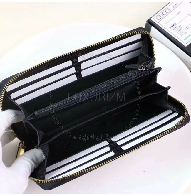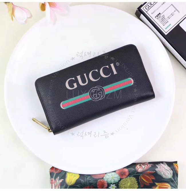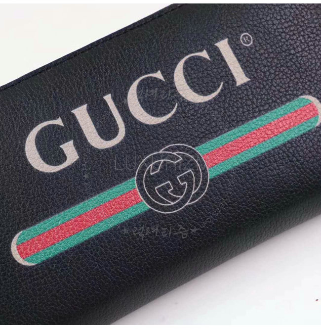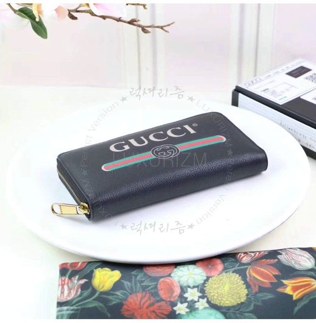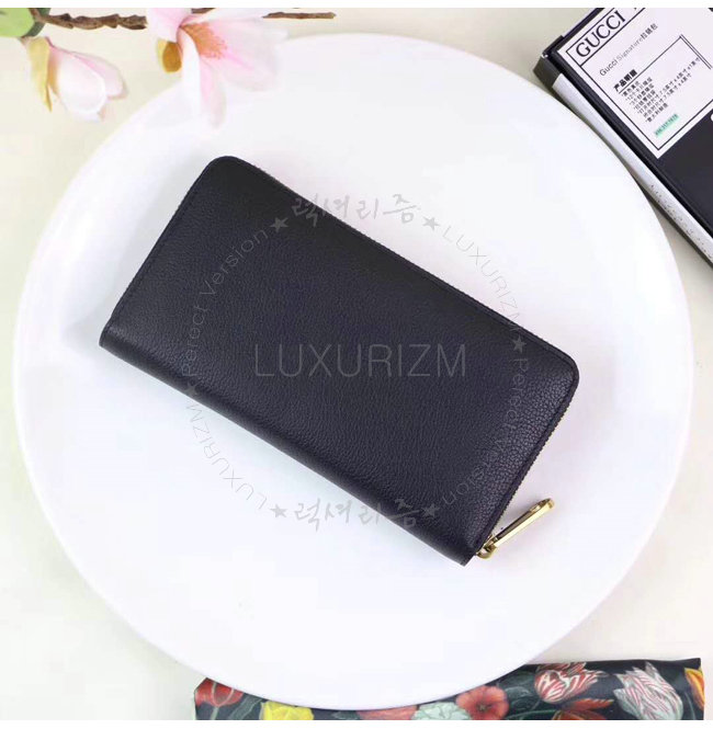 [스페셜오더]GUCCI-496317 8163 구찌 블랙 가죽 Gucci 로고 집 어라운 월릿