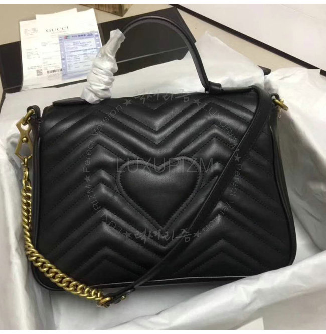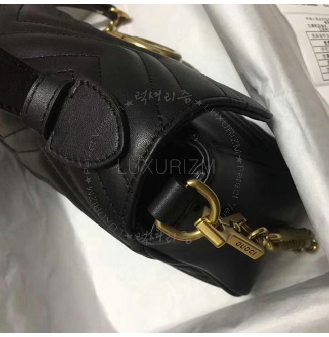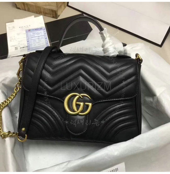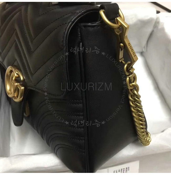 [스페셜오더]GUCCI-498110 1000 구찌 GG Marmont 블랙 마틀라세 가죽 탑 핸들 백