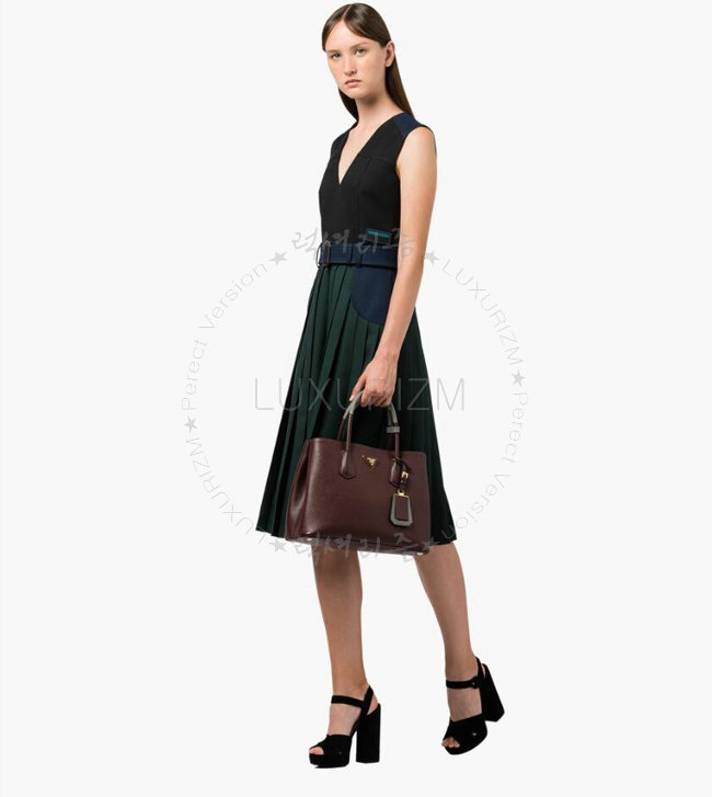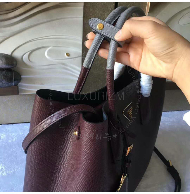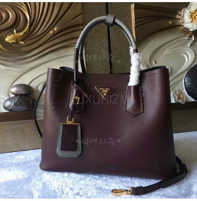 [스페셜오더]PRADA-1BG775 프라다 사피아노 가죽 투톤 핸들 와인 더블 백