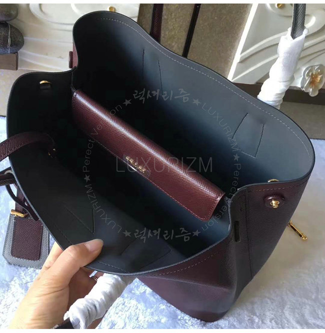 [스페셜오더]PRADA-1BG775 프라다 사피아노 더블 가죽 핸들 토트백 레드브라운