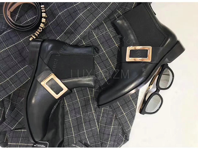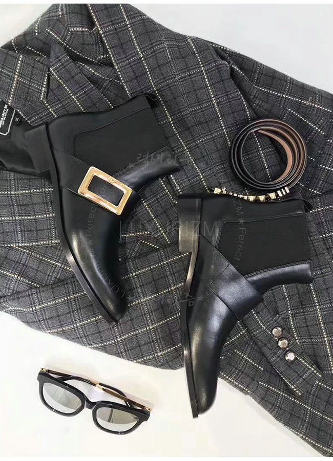 ROGER VIVIER-398153809 로저비비에 블랙 가죽 버클 앵클 부츠 여성용