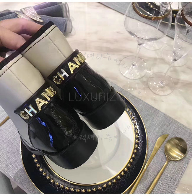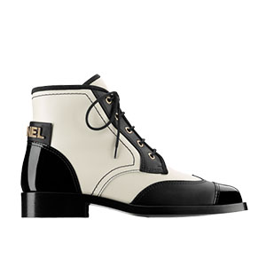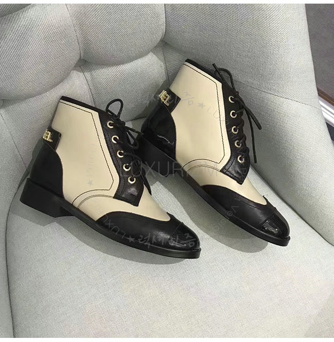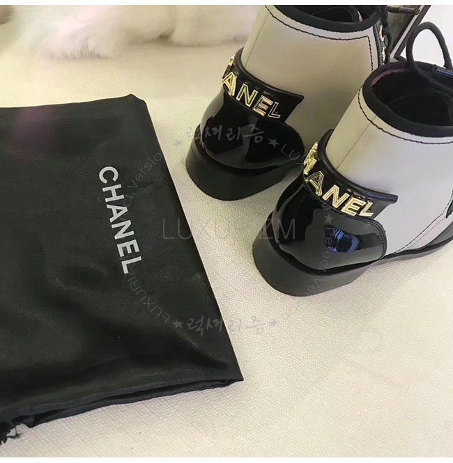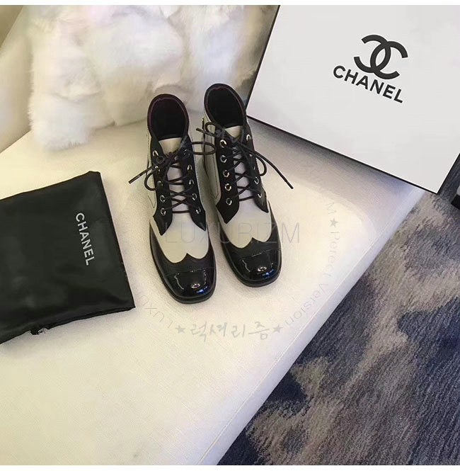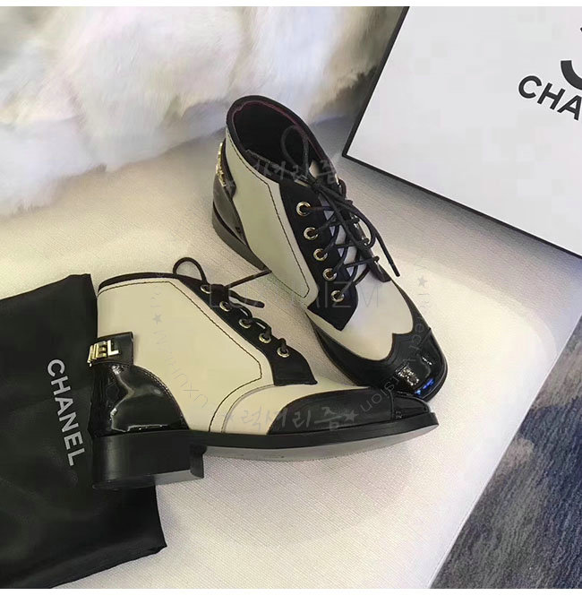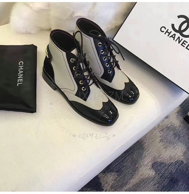 CHANEL-G33266 샤넬 화이트 블랙 카프스킨 레이스업 여성용