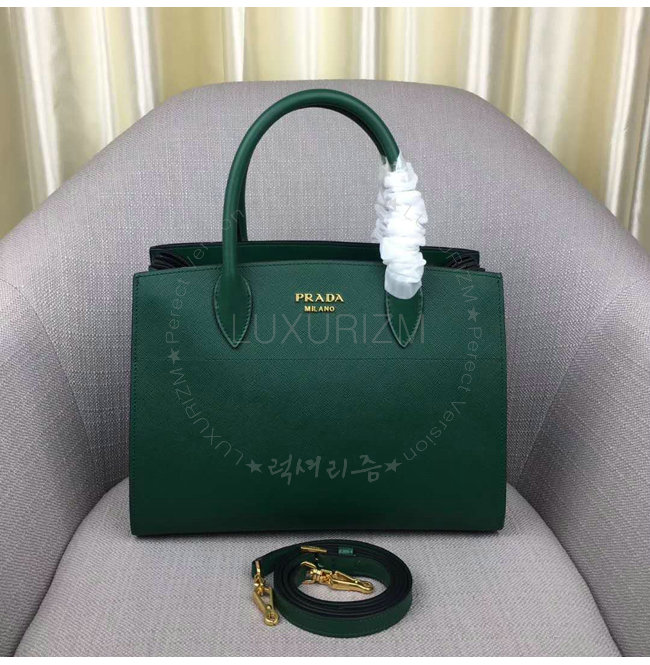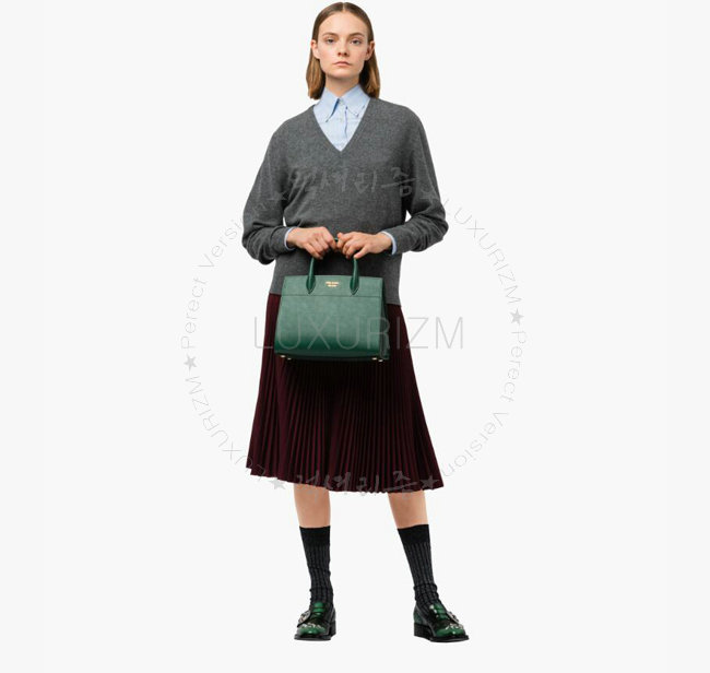 [스페셜오더]PRADA-1BA049 프라다 사피아노 가죽 그린 비블리오텍 토트 백