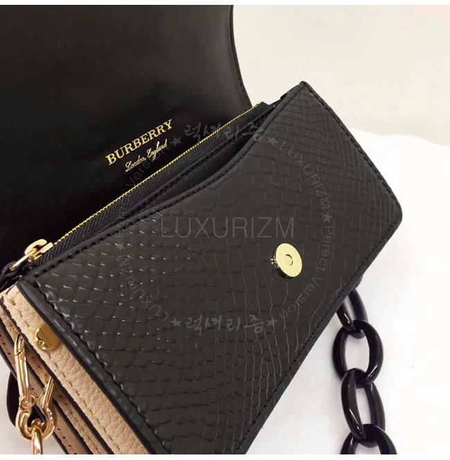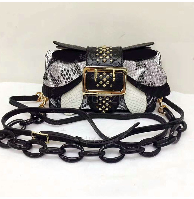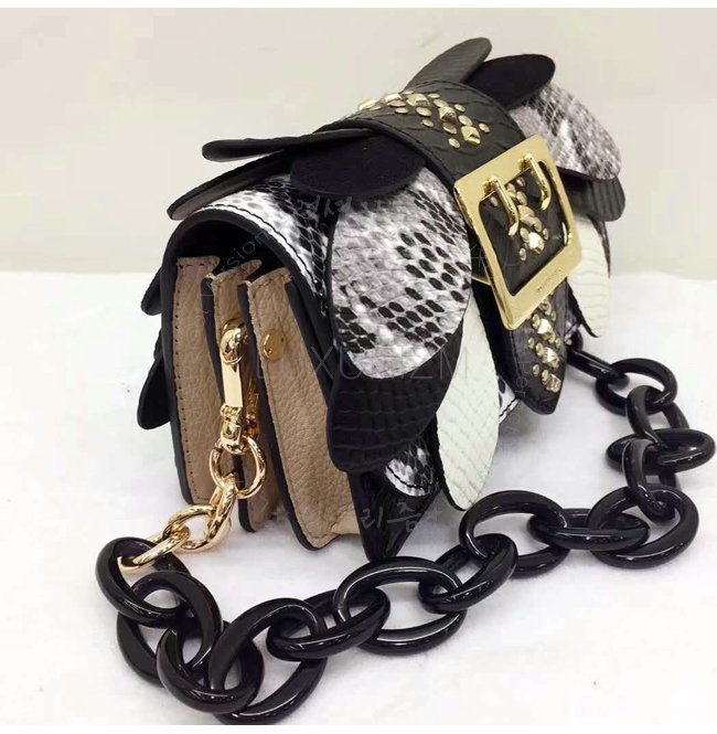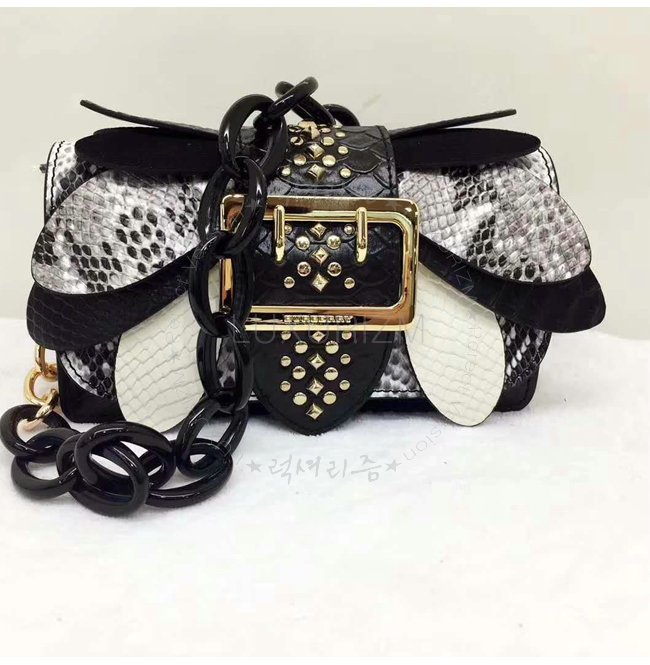 [스페셜오더]BURBERRY-40489741 버버리 스네이크스킨 가죽 블랙 화이트 스몰 버클 백