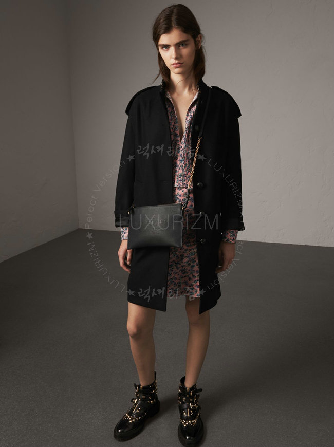 여밈 수작업으로 마감칠된 테두리 유광 금속 하드웨어 앞면의 버버리 엠보싱 로고.