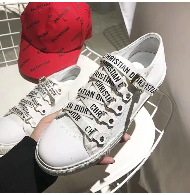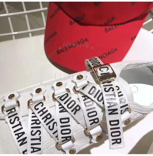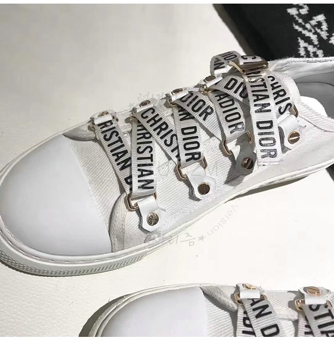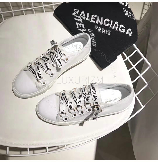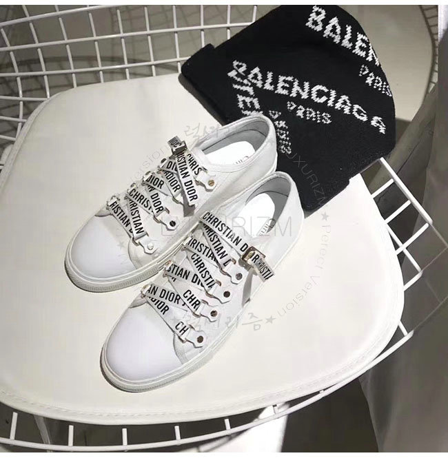 DIOR-KCK177 디올 화이트 캔버스 로우탑 스니커즈 여성용