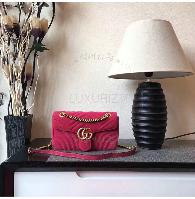 [스페셜오더]GUCCI-443497 5671 구찌 GG Marmont 마틀라세 페트롤 루비 벨벳 숄더백