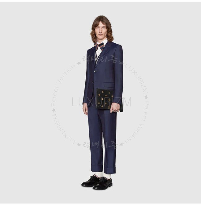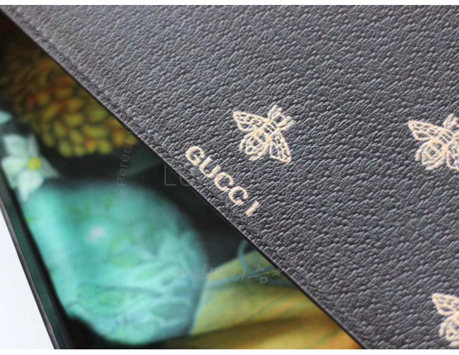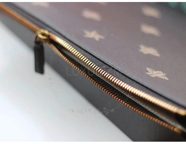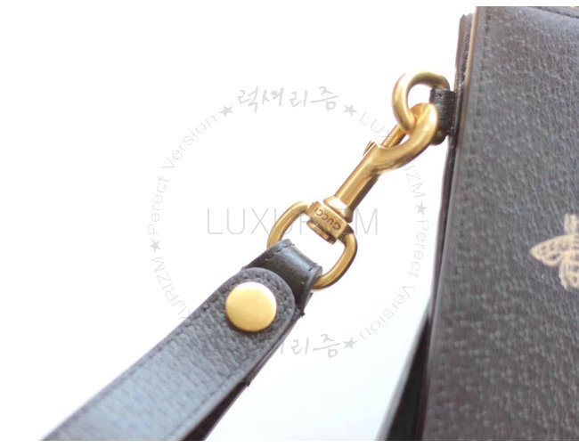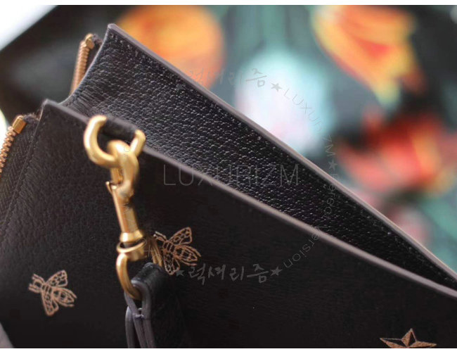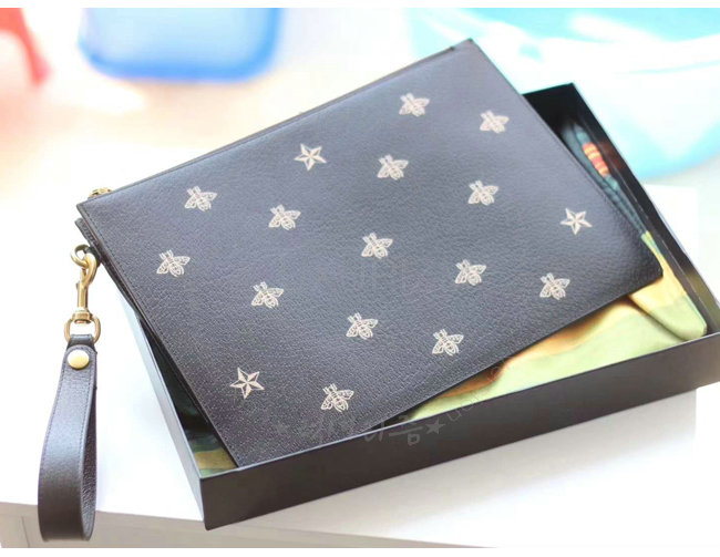 GUCCI-495066 8747 구찌 블랙 가죽 꿀벌 스타 프린트 파우치