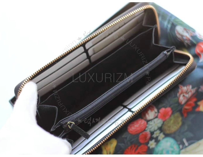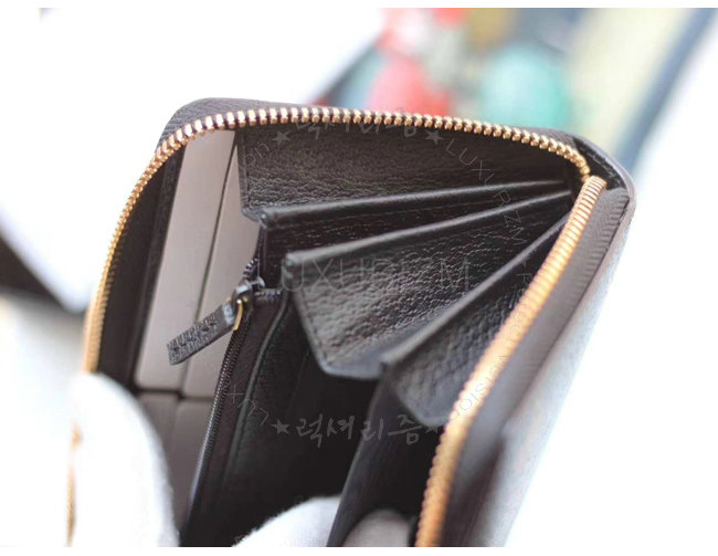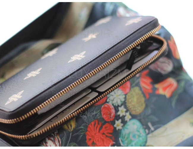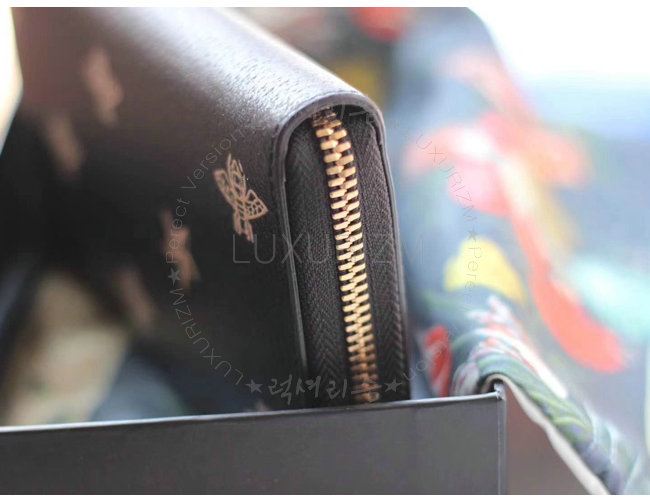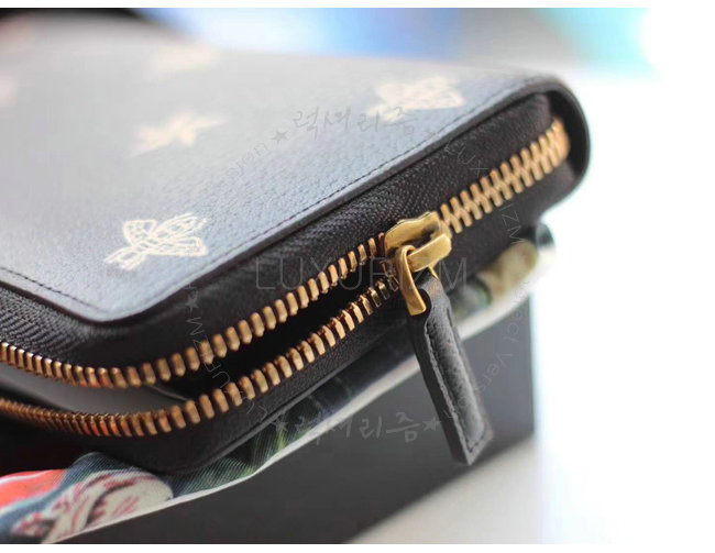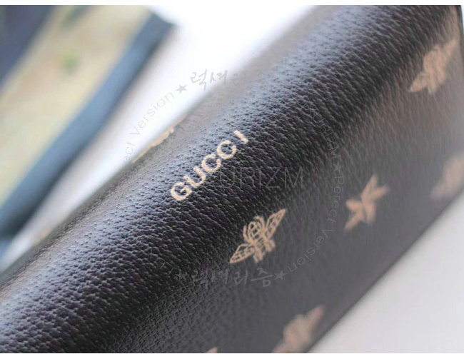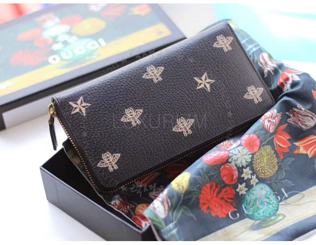GUCCI-495062 8474 구찌 블랙 가죽 꿀벌 스타 프린트 집 어라운 월릿