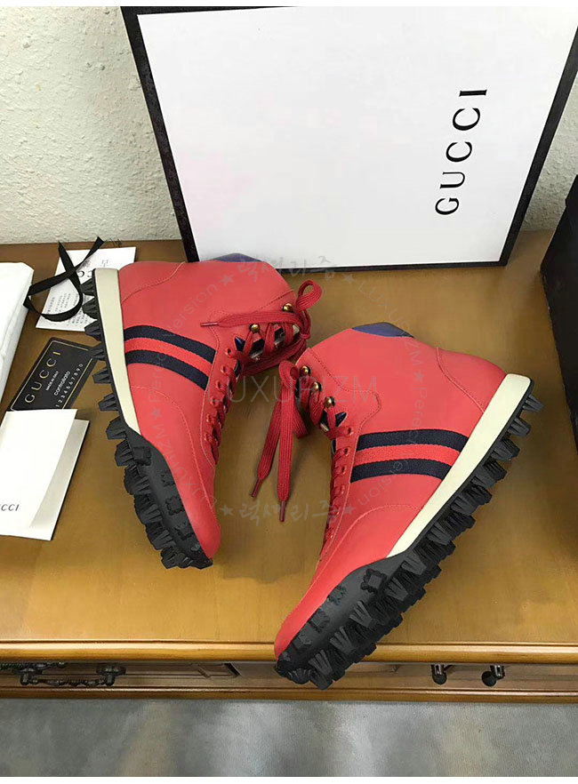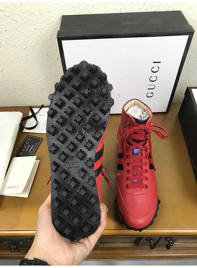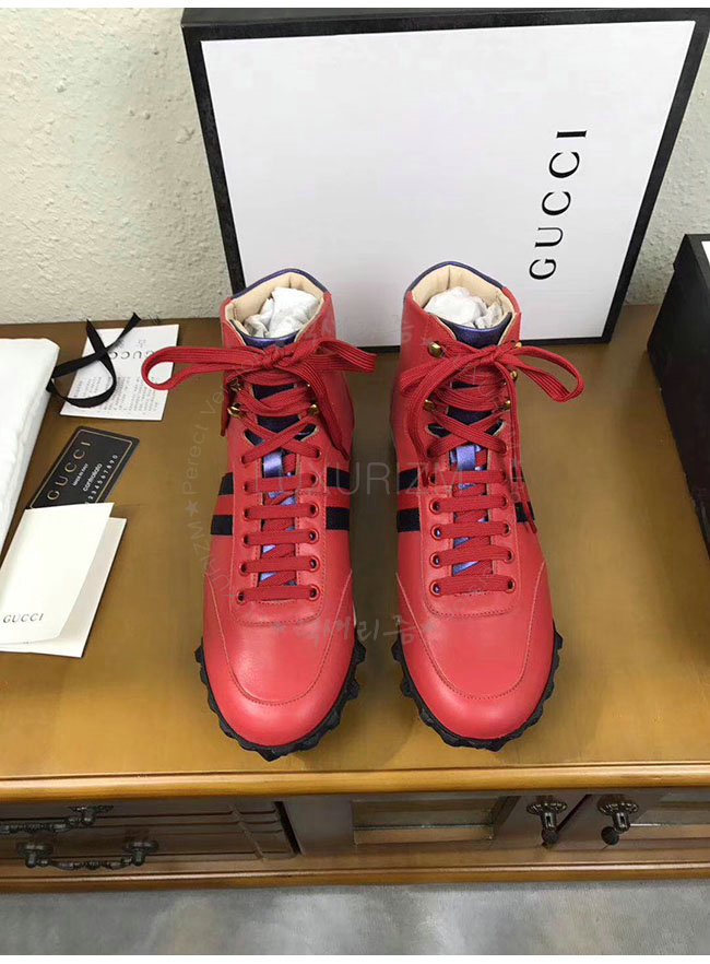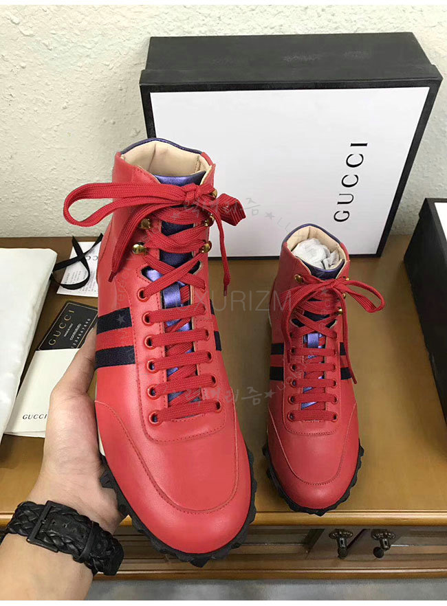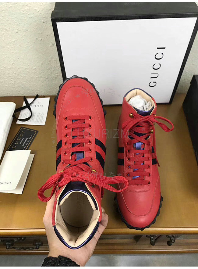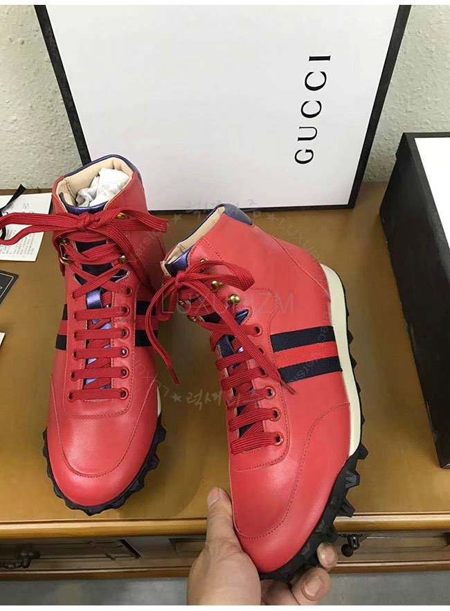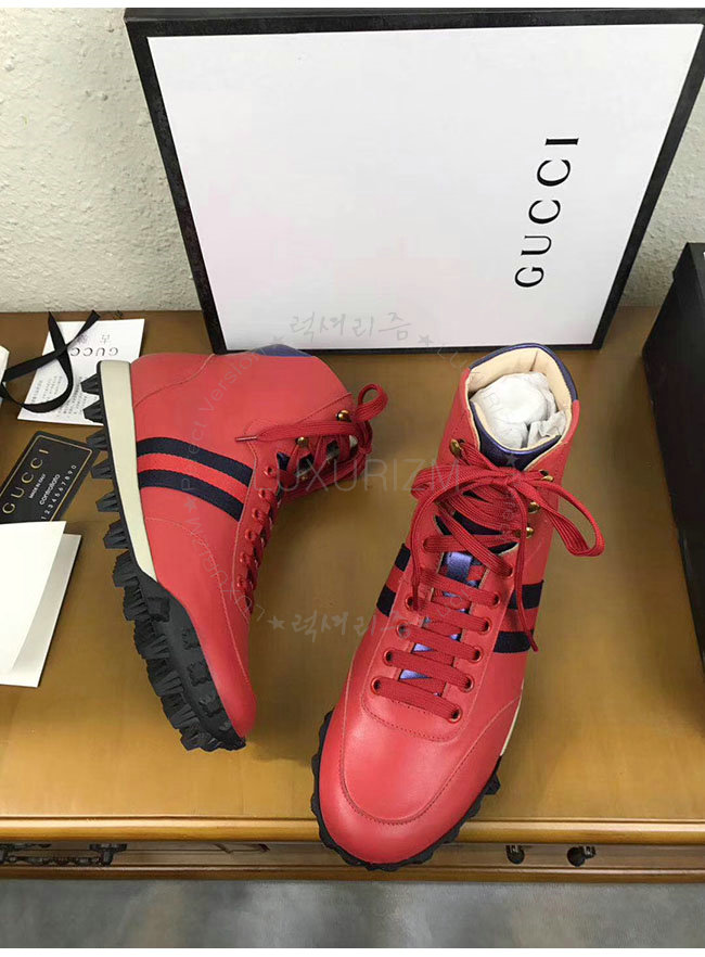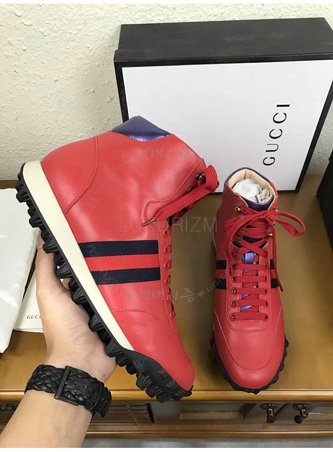 [스페셜오더]GUCCI-478182 6470 구찌 웹 레드 가죽 하이탑 스니커즈 남성용