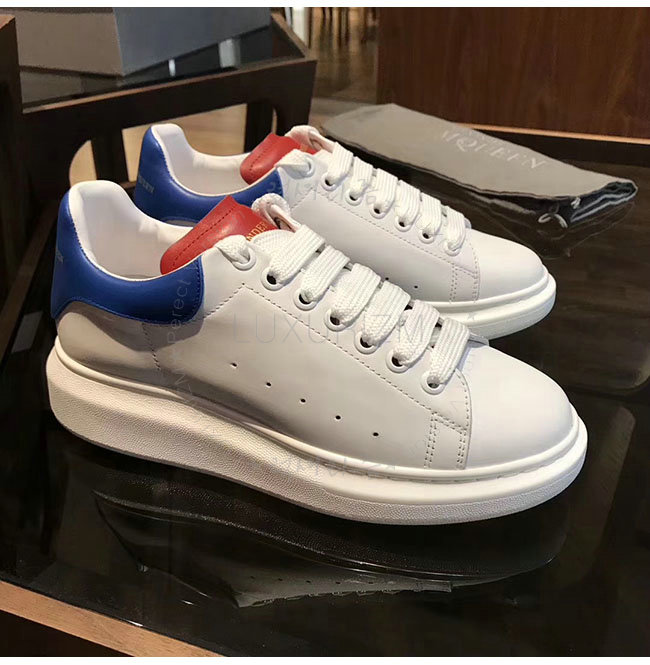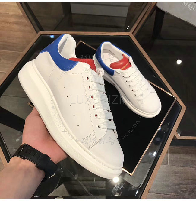 ALEXANDER MCQUEEN-441631 오버솔 화이트 레드 블루 가죽 스니커즈 남성용