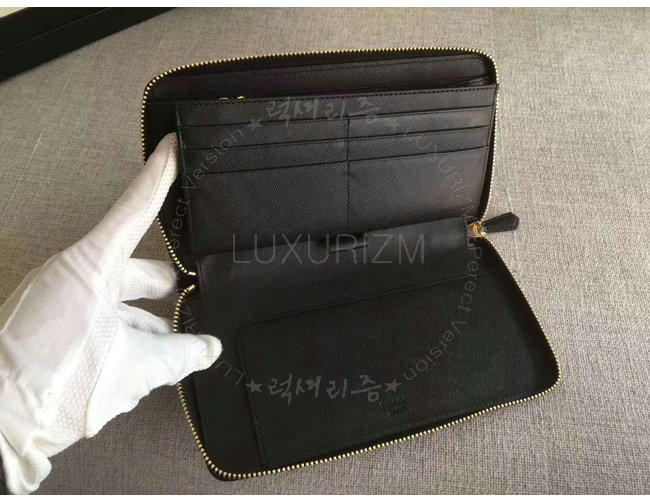 #프라다이미테이션 남성장지갑쇼핑몰 럭셔리즘 [스페셜오더]PRADA-1ML188 프라다 사피아노 가죽 트라이앵글 블랙 지퍼 지갑