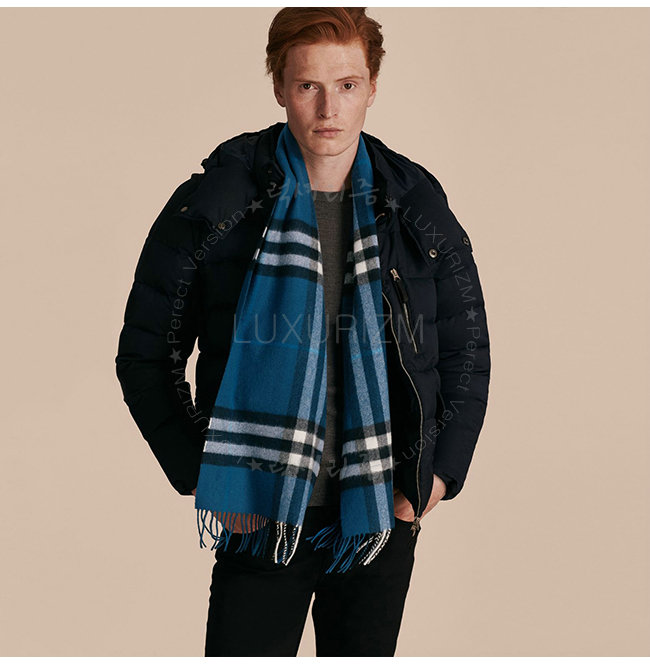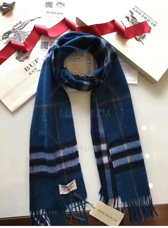 BURBERRY-39942091 버버리 클래식 마린 블루 체크 캐시미어 스카프 남녀공용