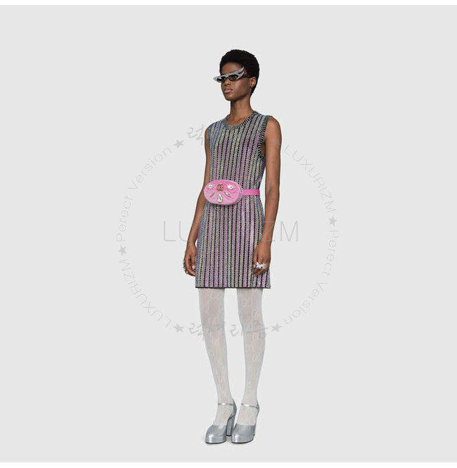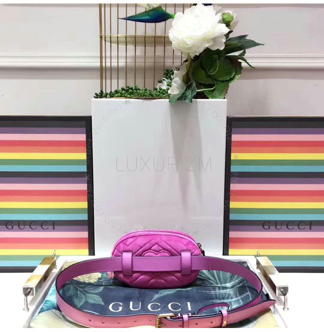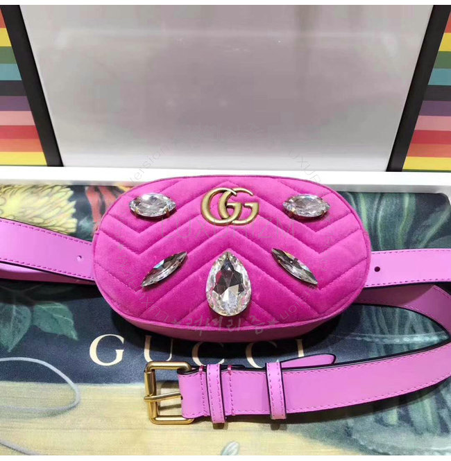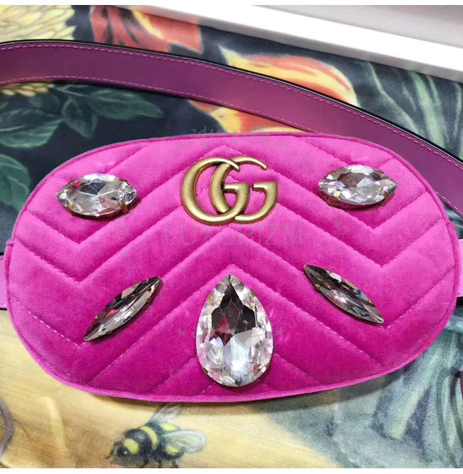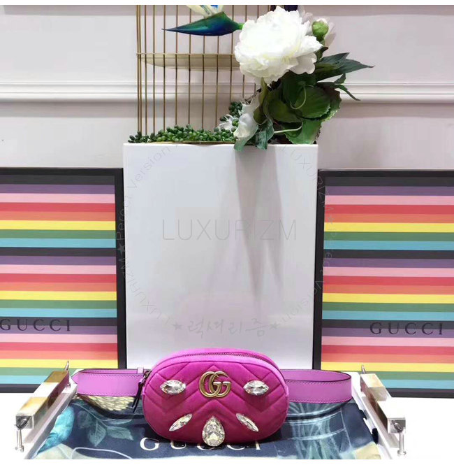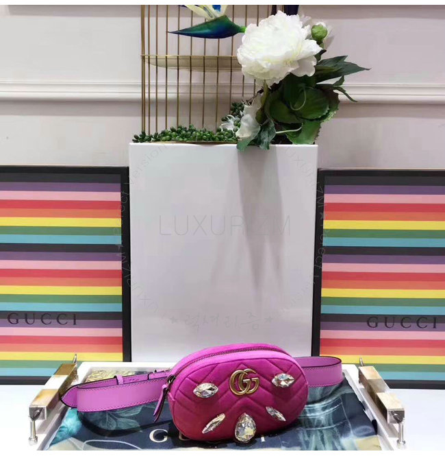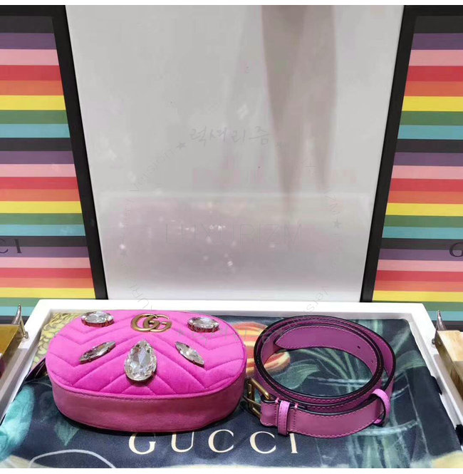 [스페셜오더]GUCCI-476434 5870 구찌 GG Marmont 크리스탈 장식 핑크 벨벳 벨트 백