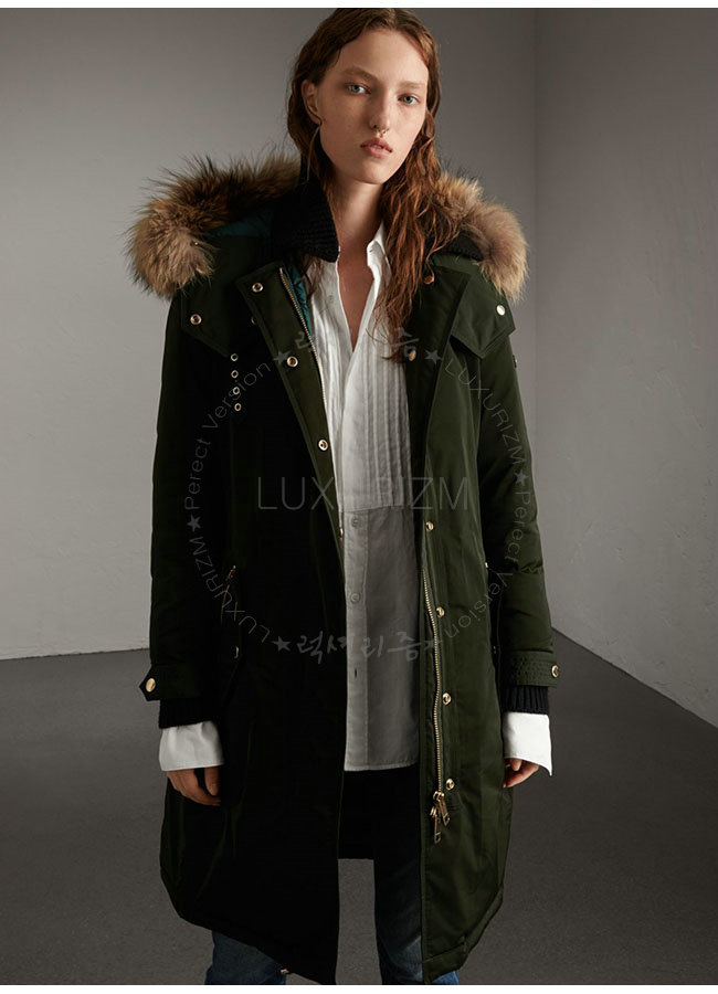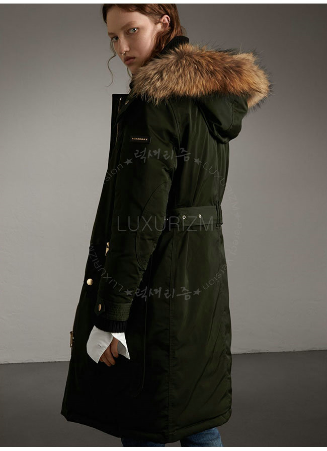 [스페셜오더]BURBERRY-40254831 버버리 그린 디태처블 퍼 트리밍 다운 필드 파카 코트 여성용