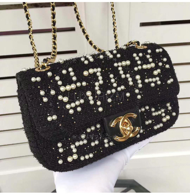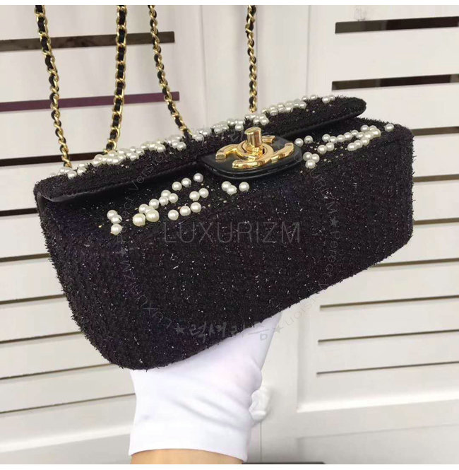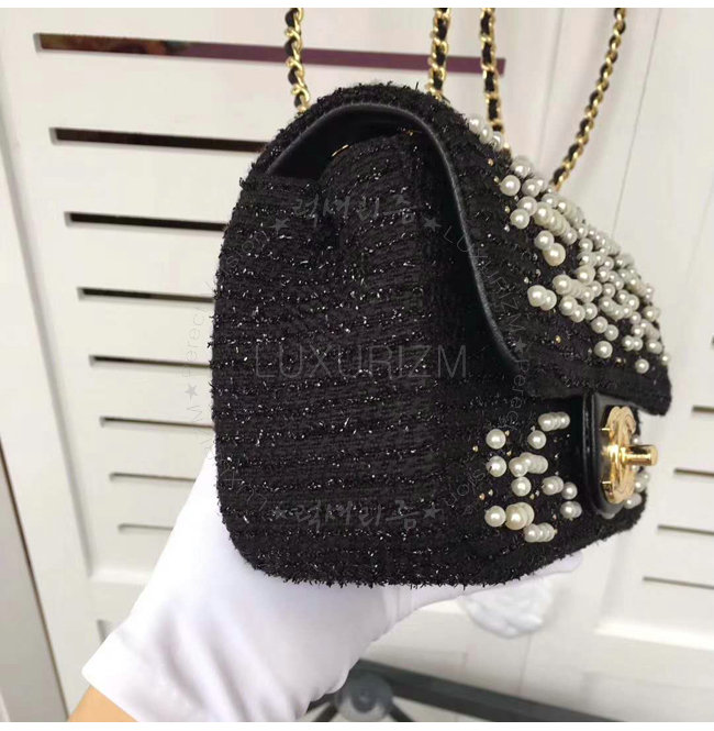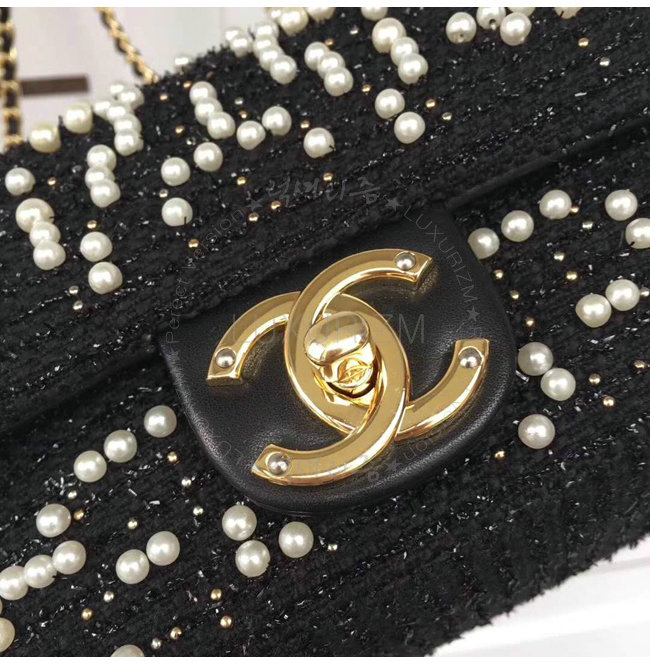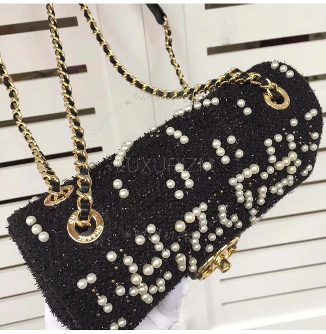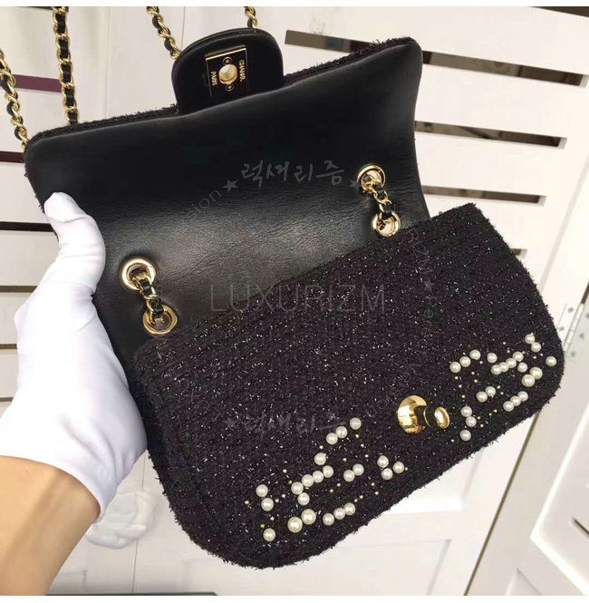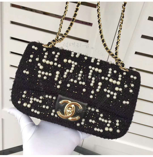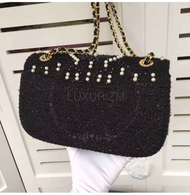 [스페셜오더]CHANEL-A91951 샤넬 트위드 이미테이션 펄 골드 메탈 블랙 플랩 백