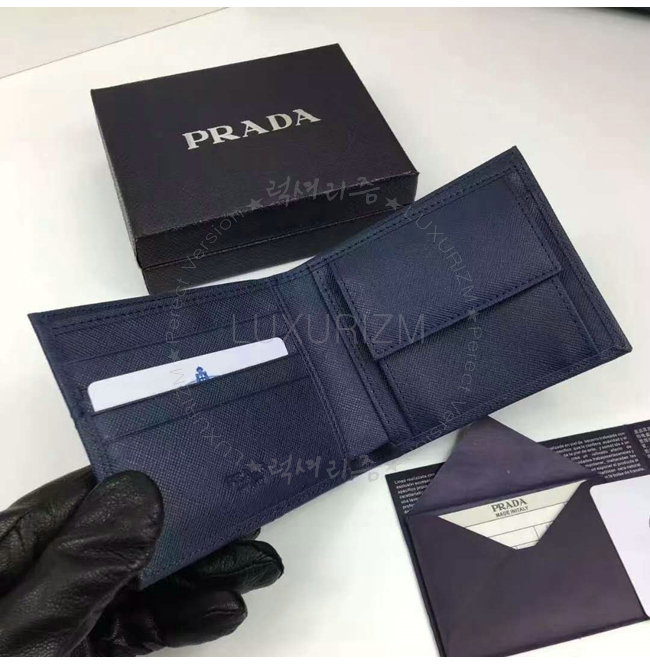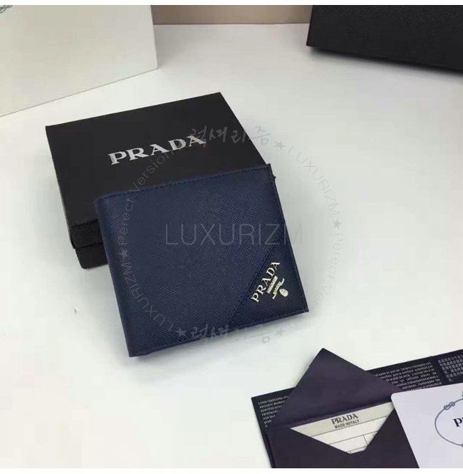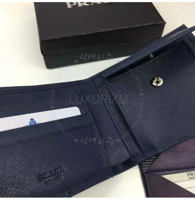 PRADA-2MO738 프라다 사피아노 가죽 메탈 로고 네이비 반지갑