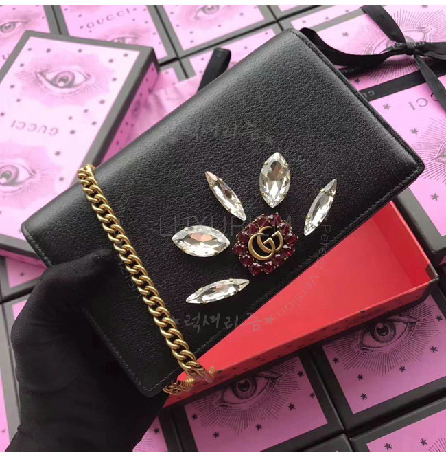 [스페셜오더]GUCCI-499782 8238 구찌 Vintage Broche 블랙 가죽 미니 체인 백