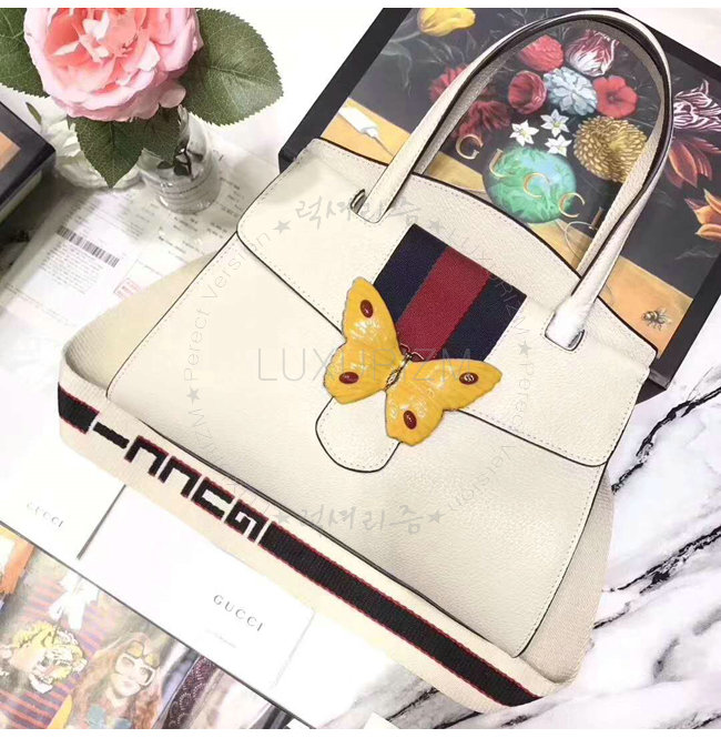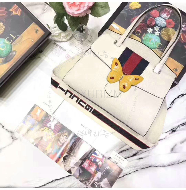 [스페셜오더]GUCCI-505344 9674 구찌 화이트 가죽 나비 디테일 탑 핸들 백