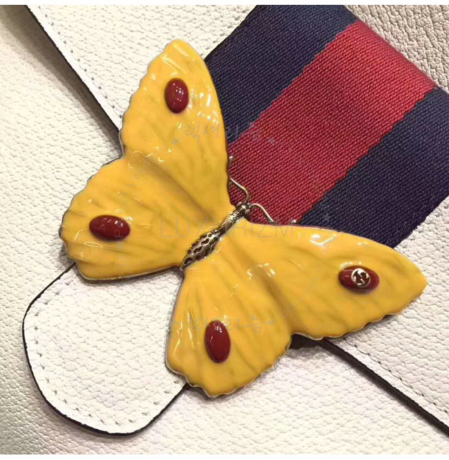 나비 모티브. 시그니처 Web 스트라이프 디테일 및 구찌 자카드 스트라이프 숄더 스트랩 장식.